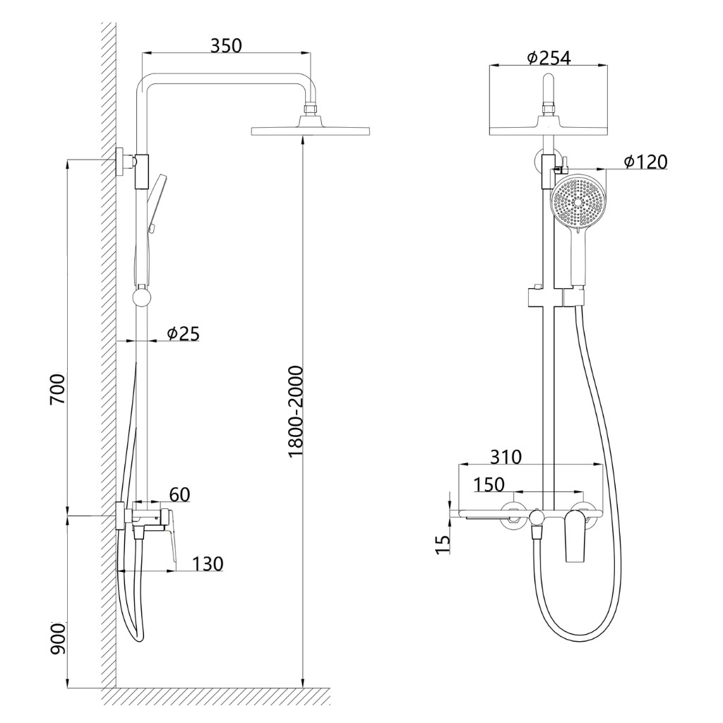 Zuhany csaptelep, Esőztető fejzuhany, Zuhanyrózsa gégecsővel