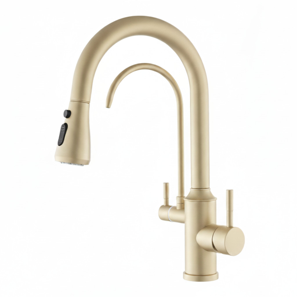 Welland Riva 3 utas / vízszűrős mosogató csaptelep - kihúzható zuhanyfej (matt arany)