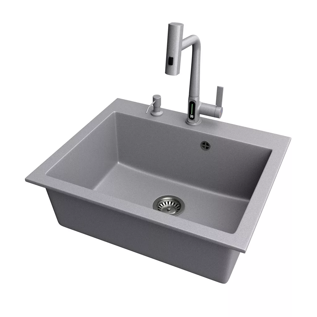Gránit mosogató NERO Piazza-60 + Welland Enzo okoscsaptelep + adagoló (szürke)