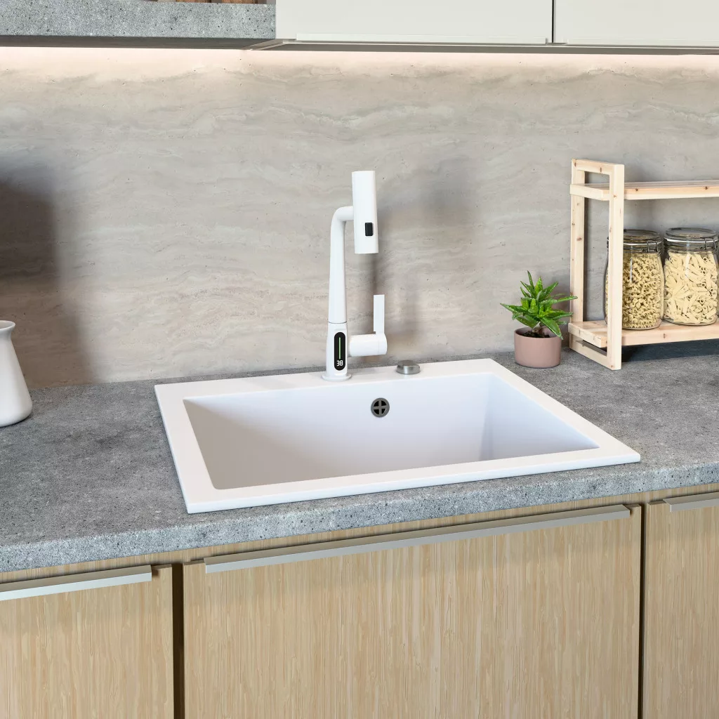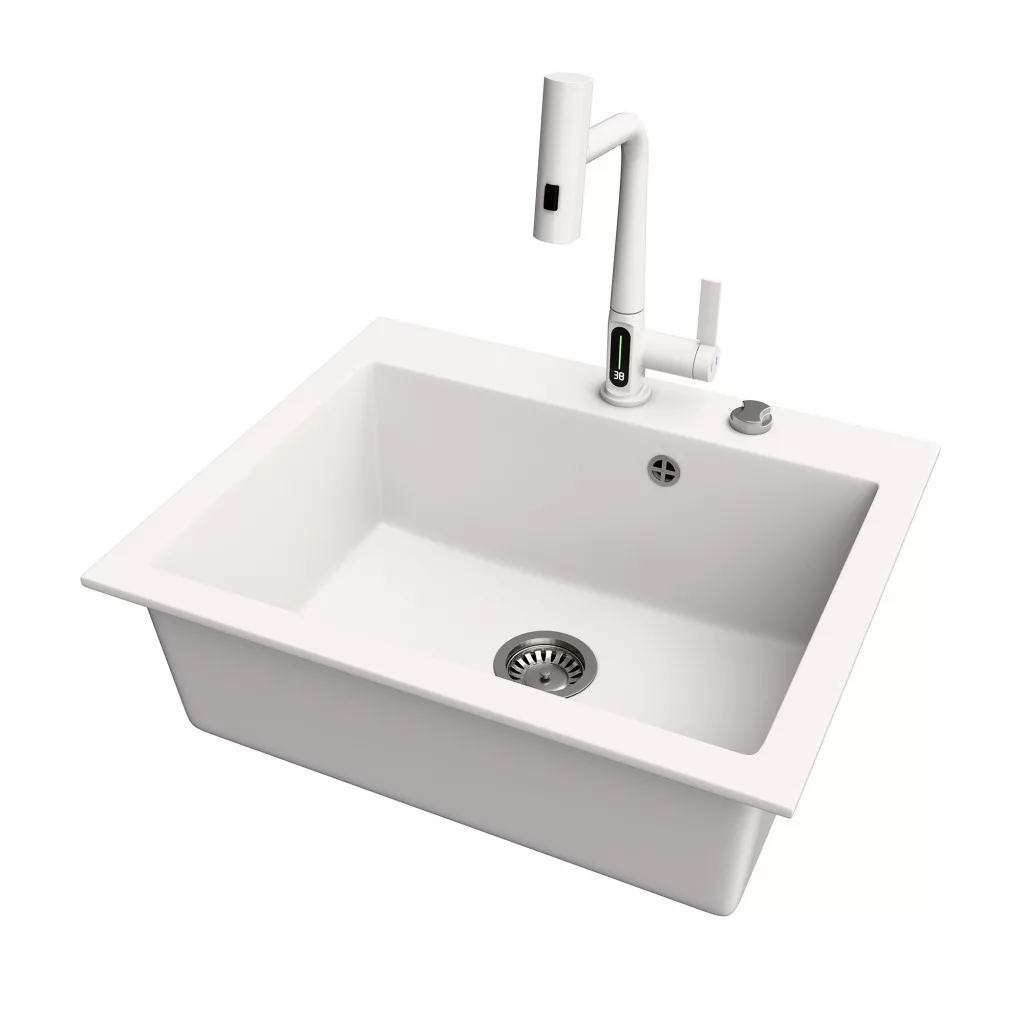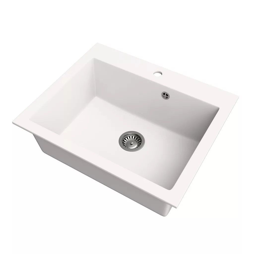 Gránit mosogató NERO Piazza-60 + Welland Enzo okoscsaptelep + dugókiemelő (fehér)
