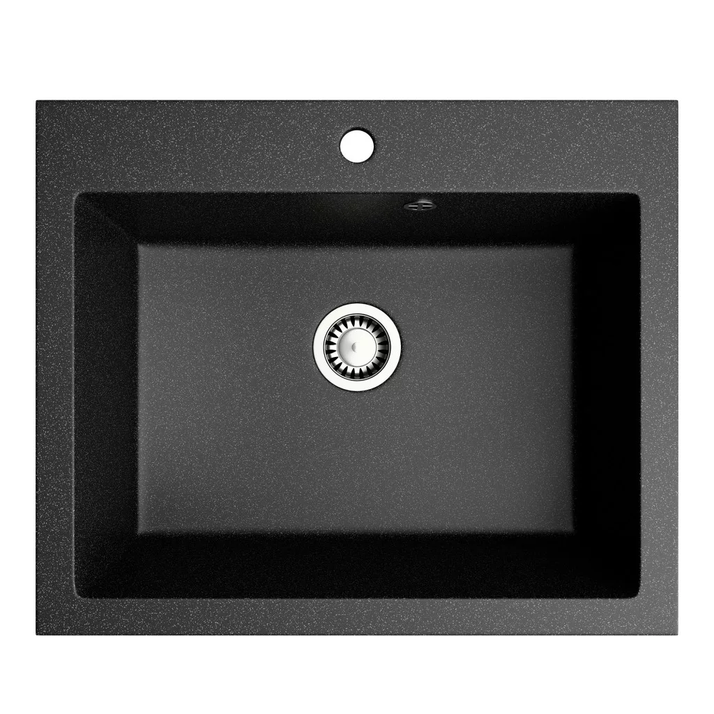 NERO Piazza-60 gránit mosogató, méretes medencével. praktikus kialakítás, 20 cm mély mosogató medencével. Letisztult, szögletes formatervezésének köszönhetően bármilyen stílusú konyha tökéletes alkotóeleme lehet, beépíthető 60 cm széles vagy szélesebb bútorszekrényekbe. Összetétele 80% gránit őrlemény és 20% akril, ami megfelel a szabvány gránit mosogató összetételnek.