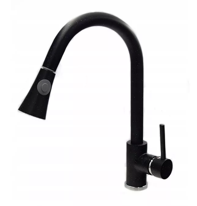 Gránit mosogató NERO Piazza-60 + kihúzható Siena csaptelep + adagoló (szemcsés fekete)