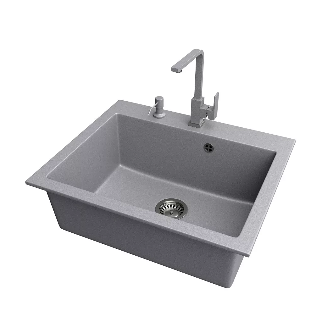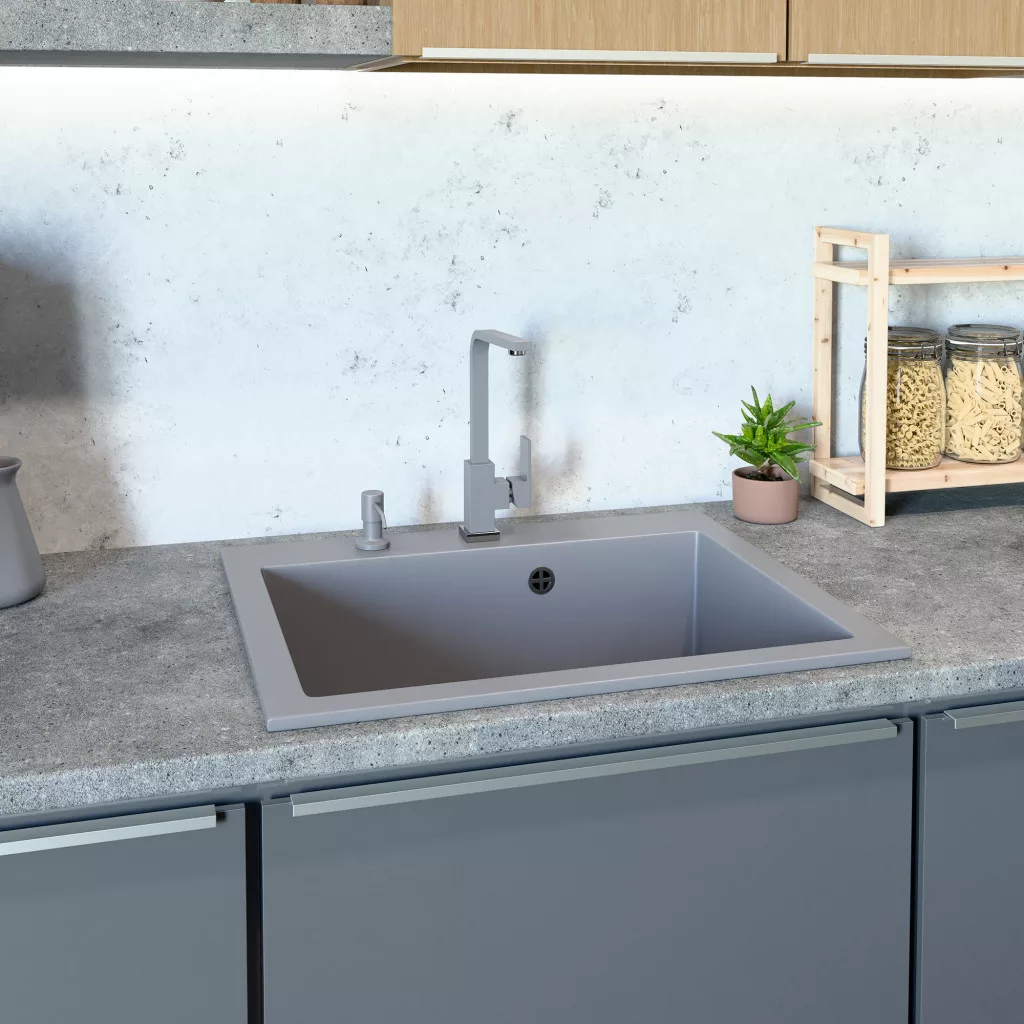 Gránit mosogató NERO Piazza-60 + Vista csaptelep + adagoló (szürke)