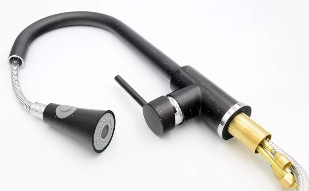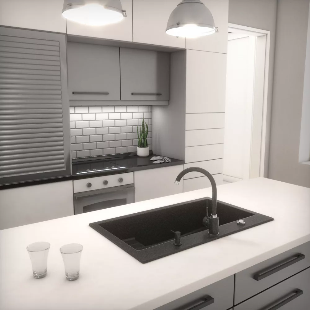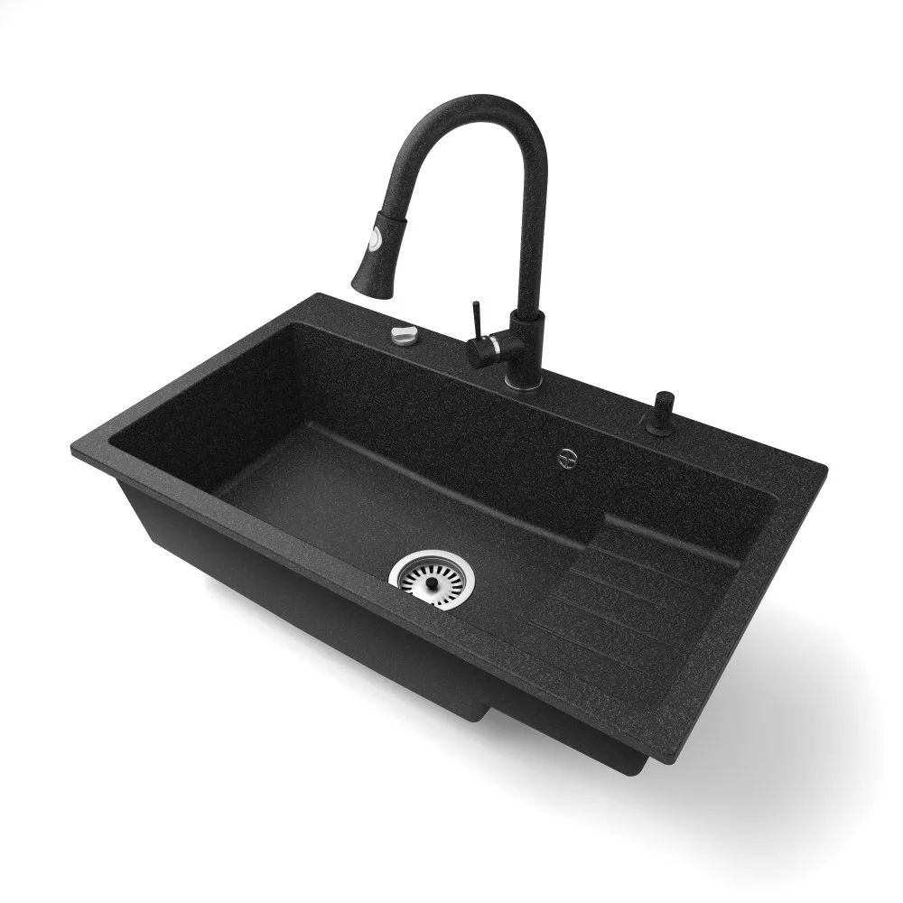 Gránit mosogatótálca NERO Boss + kihúzható Snake csaptelep + adagoló + dugókiemelő (fekete)