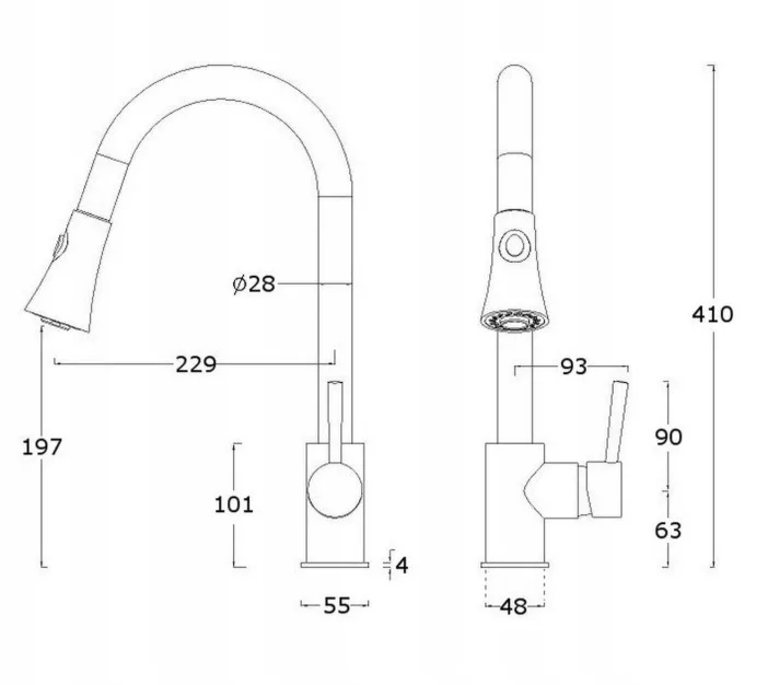 Gamma Snake kihúzható zuhanyfejes mosogató csaptelep (cserélhető kerámia betét és perlátor)