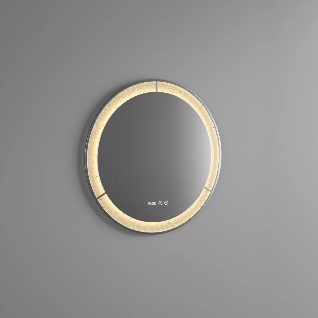 Digitális óra: A tükör felületén egy digitális óra található, ami praktikus a reggeli készülődés során. Az óra a tükörlapon külön keret nélkül jelenik meg, ami tovább fokozza az igényes esztétikai hatást.