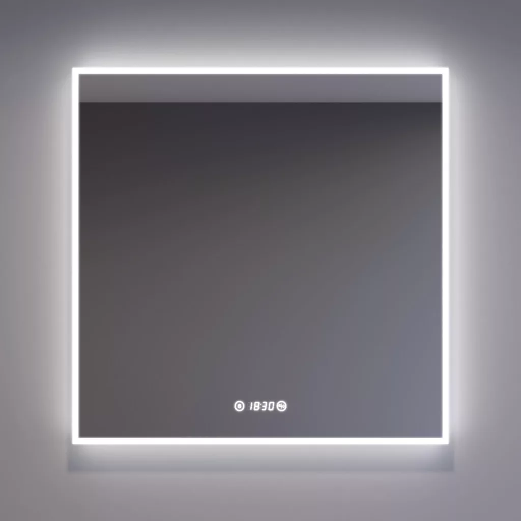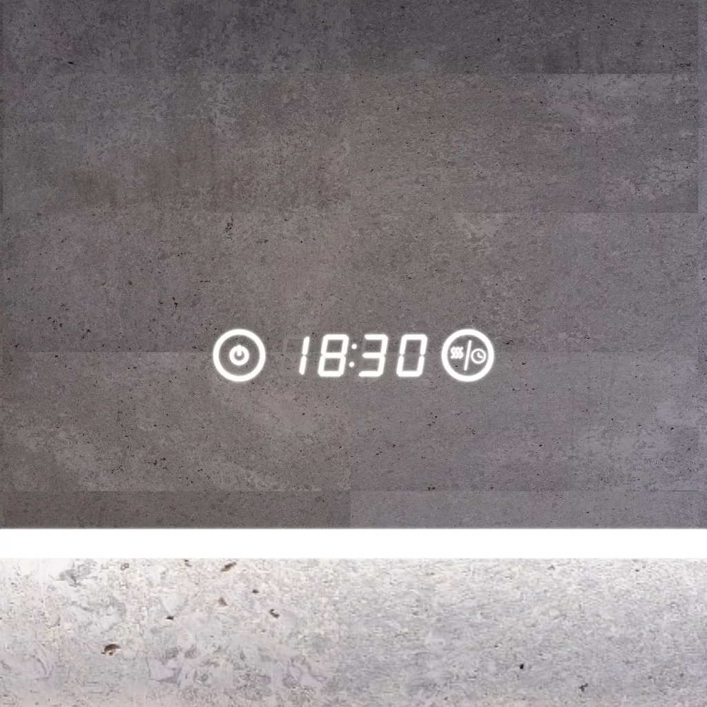 Digitális óra: A tükör felületén egy digitális óra található, ami praktikus a reggeli készülődés során. Az óra a tükörlapon külön keret nélkül jelenik meg, ami tovább fokozza az igényes esztétikai hatást.