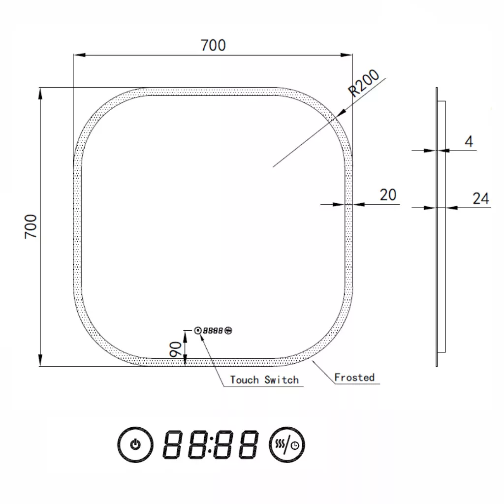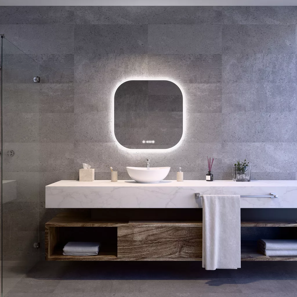 Welland Formia LED tükör - fényerő + színhőfok állítás + páramentesítő + óra - 70 x 70 cm