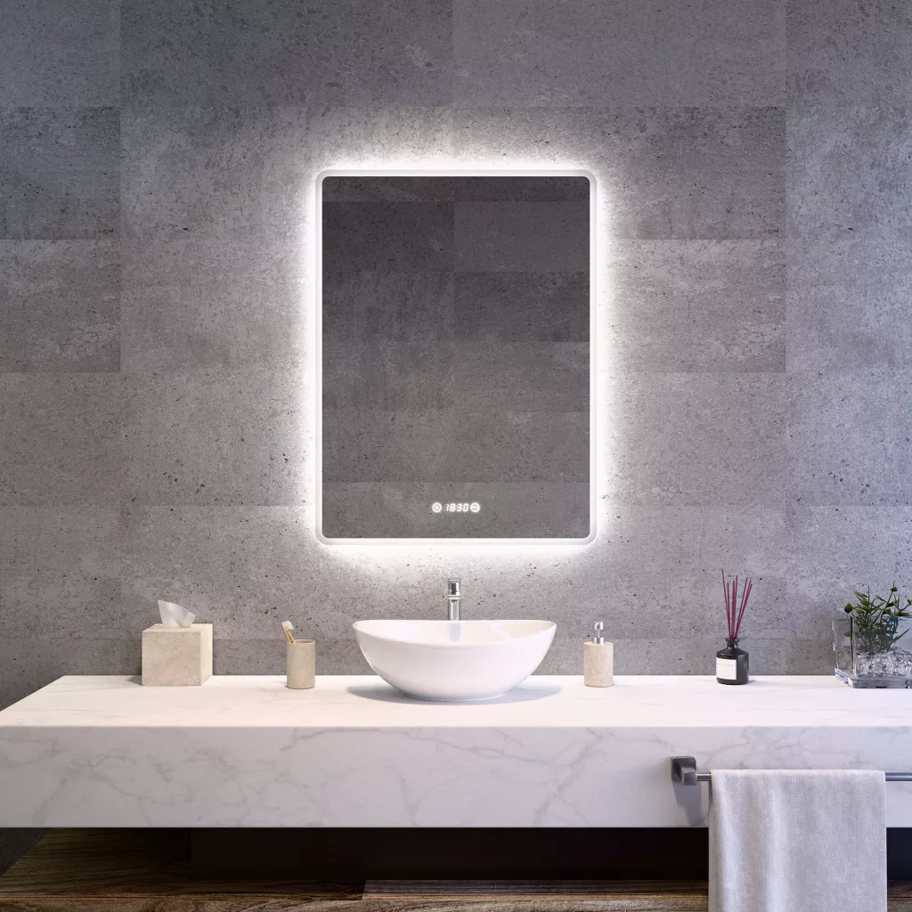 Welland Hugo LED tükör - fényerő + színhőfok állítás + páramentesítő + óra - 60 x 80 cm