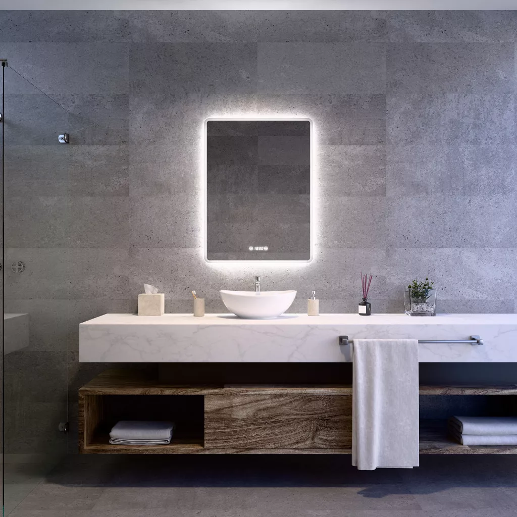 Welland Hugo fürdőszoba tükör LED világítással. Függőleges tükör, 60 x 80 cm-es méretben, szögletes formatervezés lekerekített sarkokkal, érintőgombos kapcsolókkal.