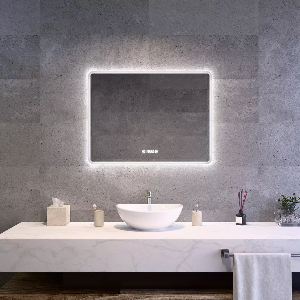 Welland Hugo LED tükör - fényerő + színhőfok állítás + páramentesítő + óra - 80 x 60 cm