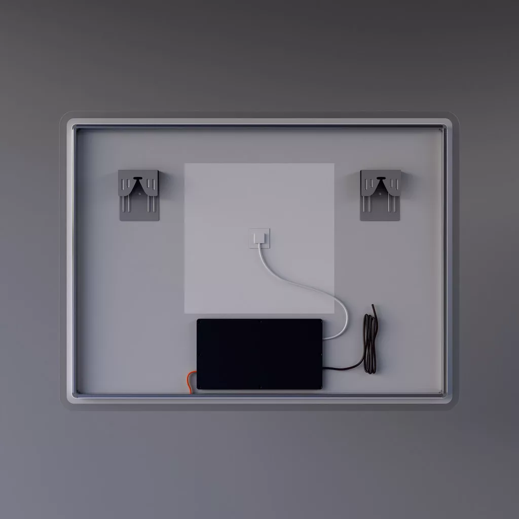 Welland Hugo fürdőszoba tükör LED világítással. 80 x 60 cm-es méretben készült, szögletes formatervezés lekerekített sarkokkal, érintőgombos kapcsolókkal.