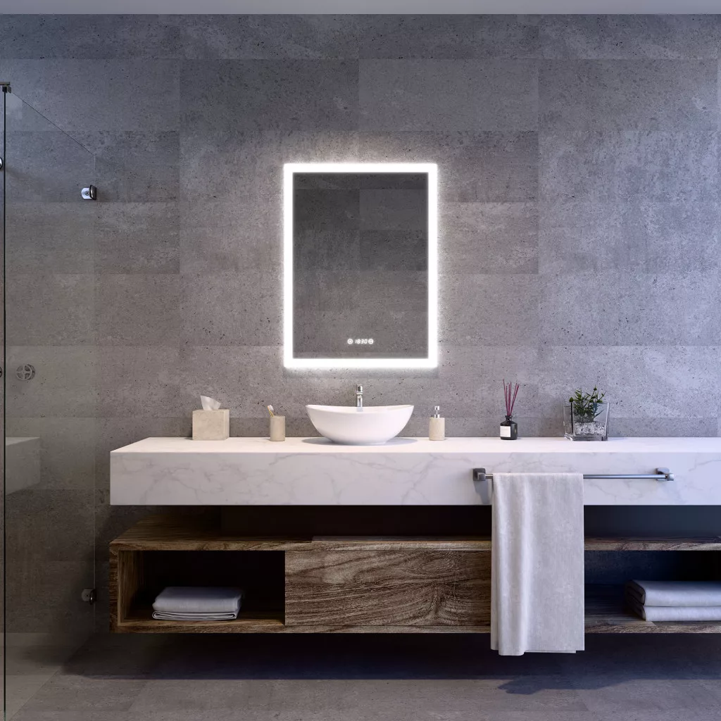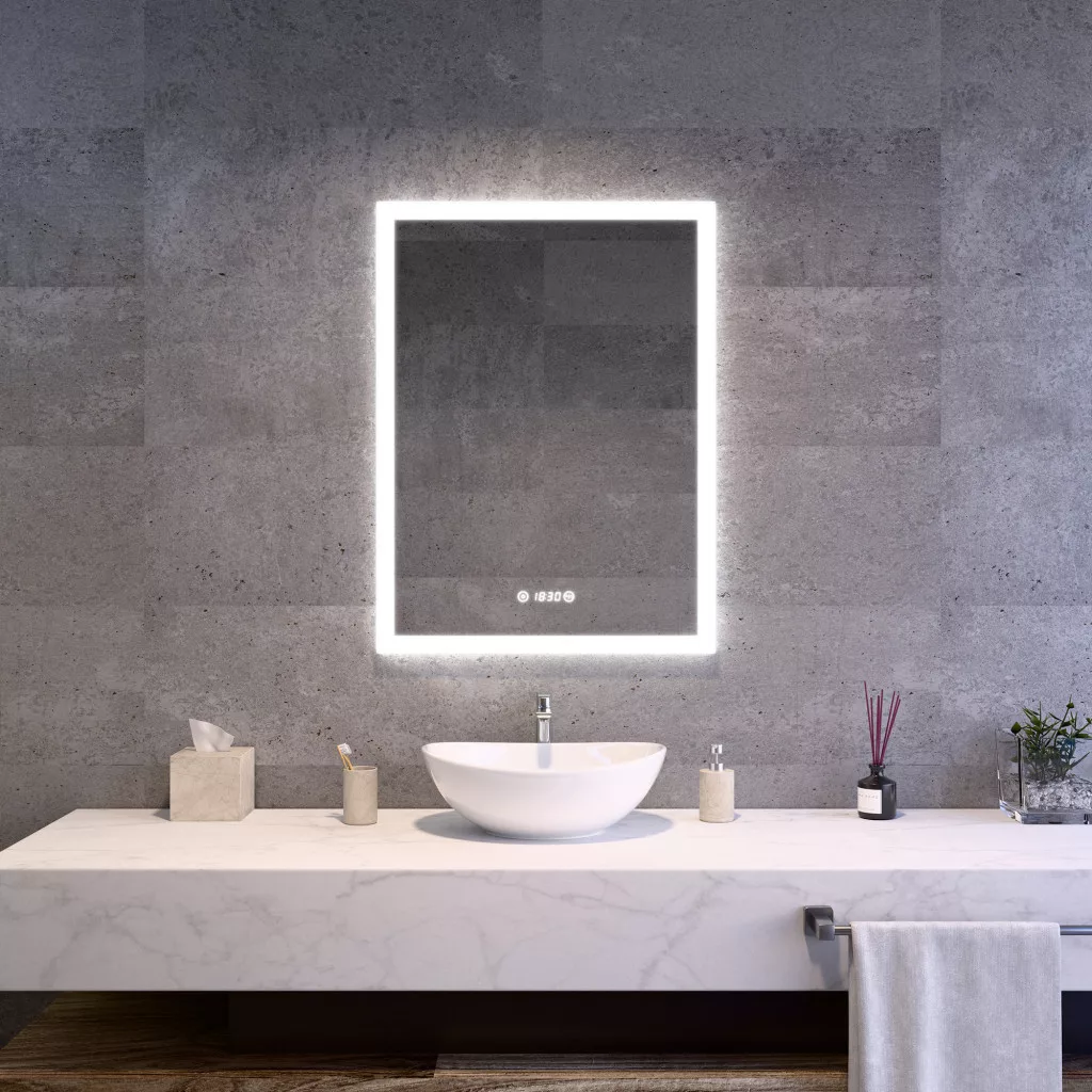 Welland Luxury-Line Bravo LED tükör - fényerő + színhőfok állítás + páramentesítő + óra - 60 x 80 cm
