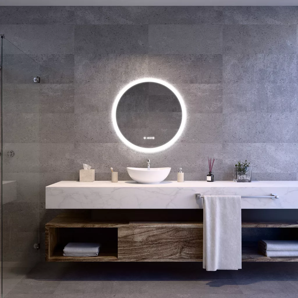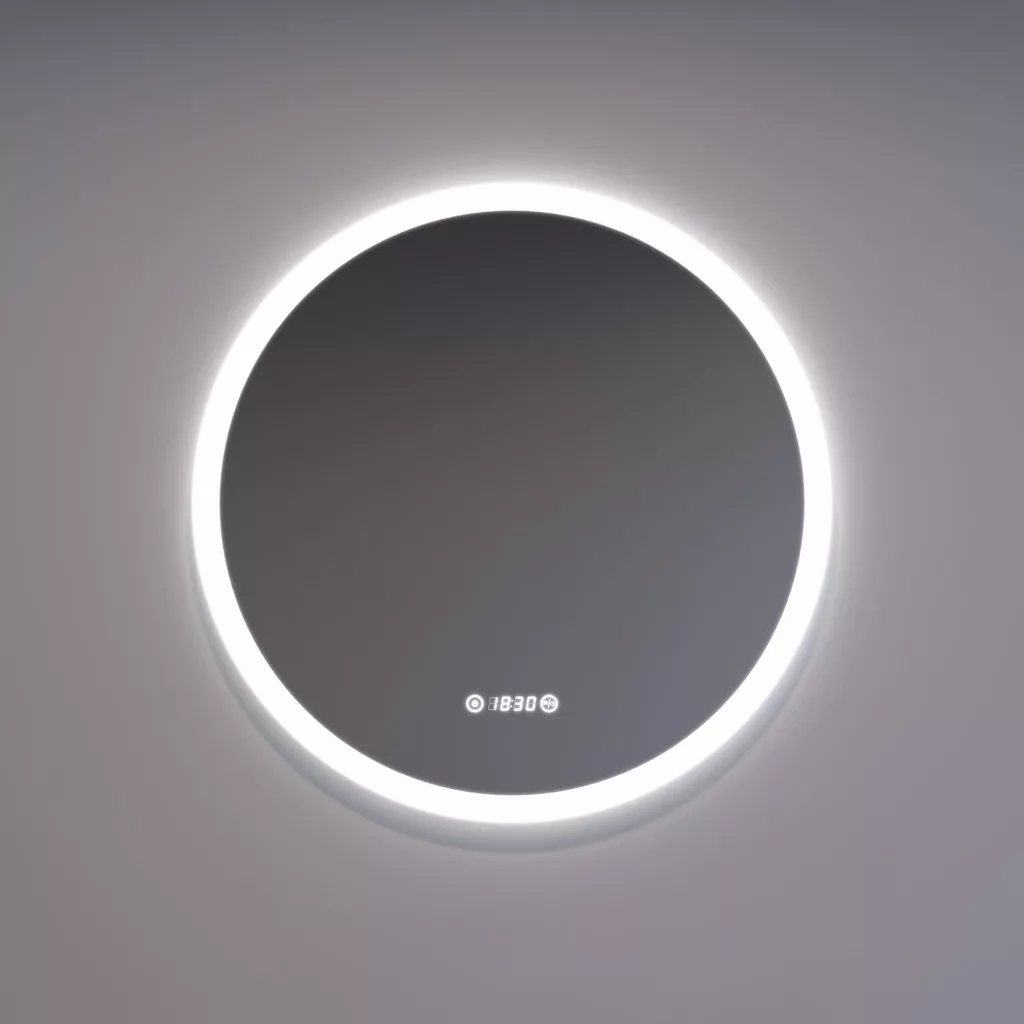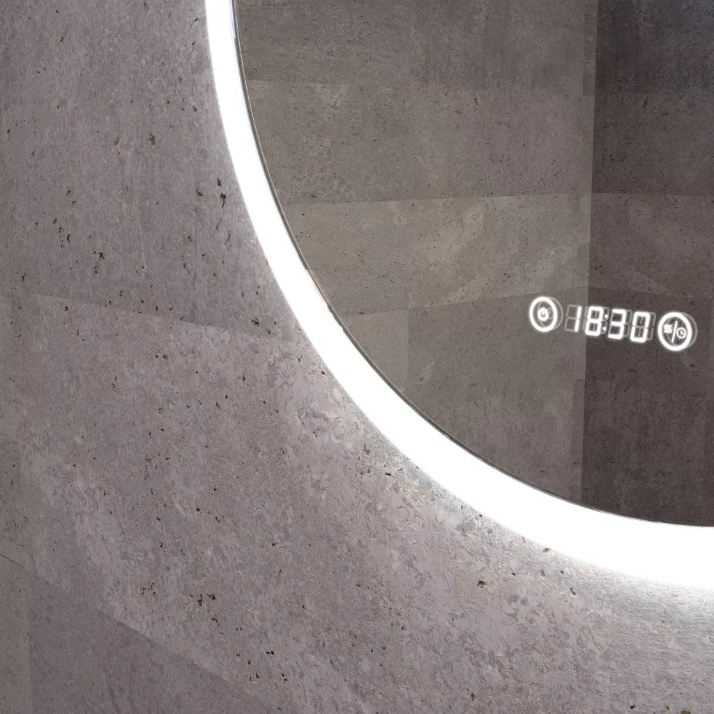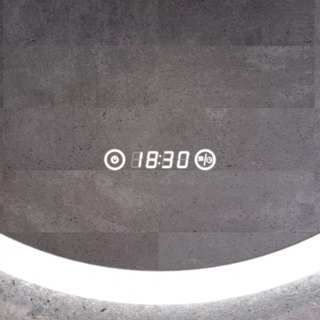 Digitális óra: A tükör felületén egy digitális óra található, ami praktikus a reggeli készülődés során. Az óra a tükörlapon külön keret nélkül jelenik meg, ami tovább fokozza az igényes esztétikai hatást.