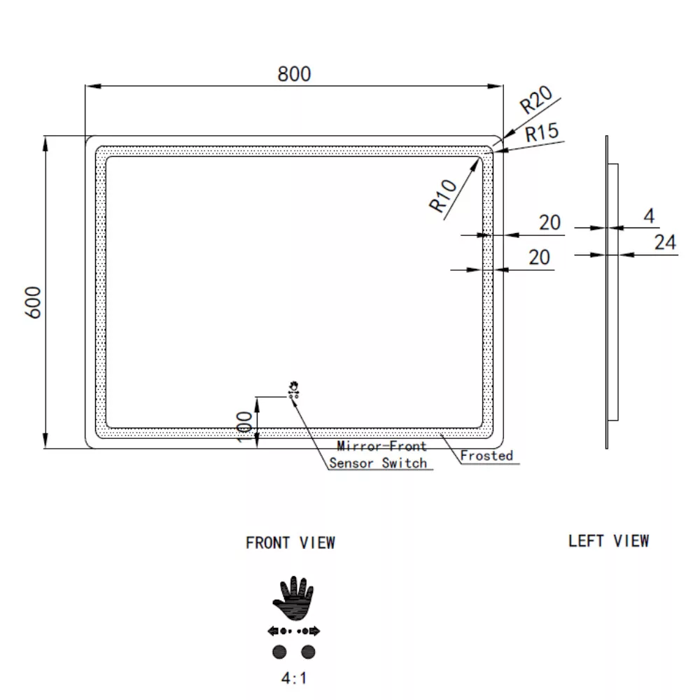 Welland Type-20H LED tükör - fényerő + színhőfok állítás + szenzoros kapcsoló + páramentesítő - 80 x 60 cm