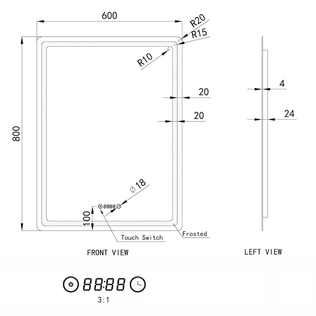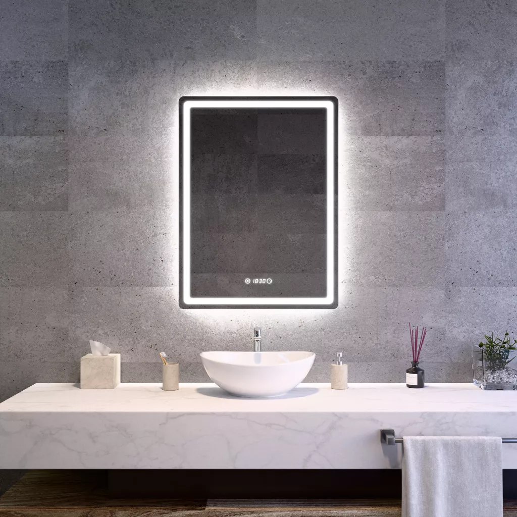 Welland Type-20 LED tükör - fényerő + színhőfok állítás + óra - 60 x 80 cm