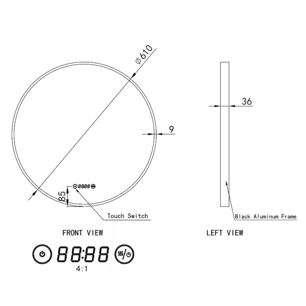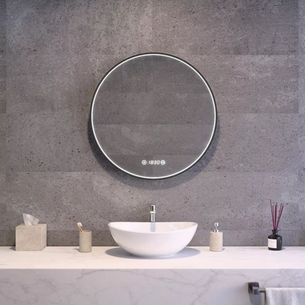 Welland Type-4 LED tükör - fényerő + színhőfok állítás + páramentesítő + óra - Ø 60 cm
