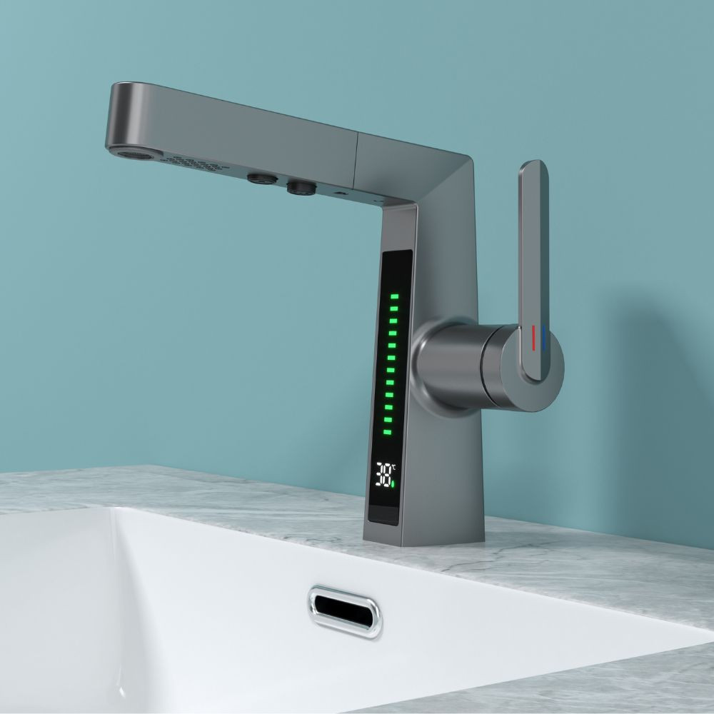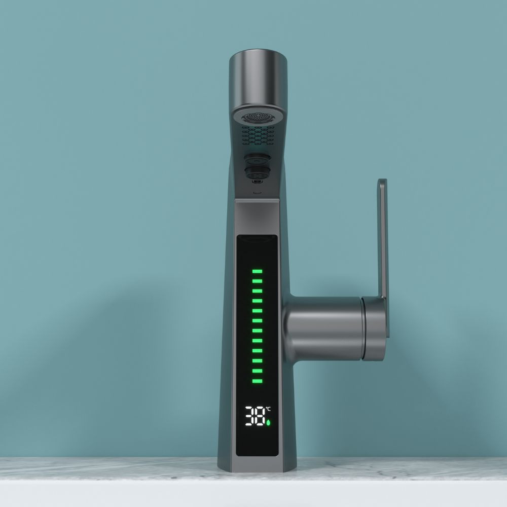 Welland FH-3429 smart mosdó csaptelep - multifunkciós fej - vízhőfok kijelző (gunmetal)