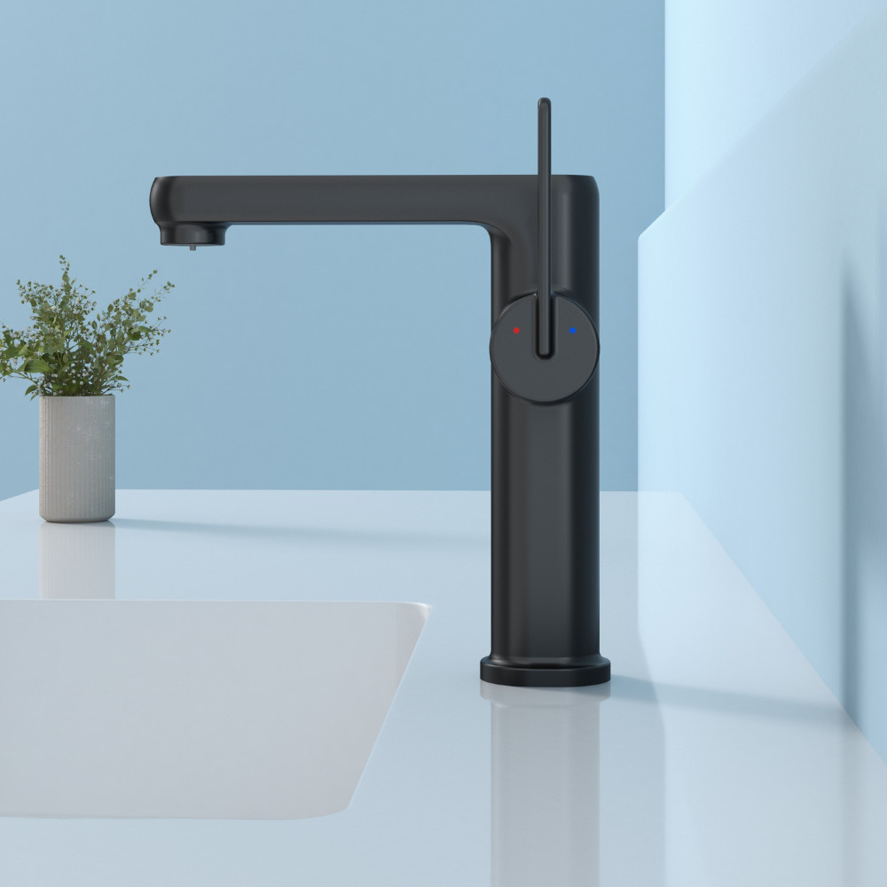 Magas minőségű sárgaréz és kompozit anyagok felhasználásával, hosszú élettartamot biztosító többszörös elektrosztatikus fekete porfestéssel készült csaptelep precíz kerámia keverőszeleppel és víztakarékos perlátorral.
