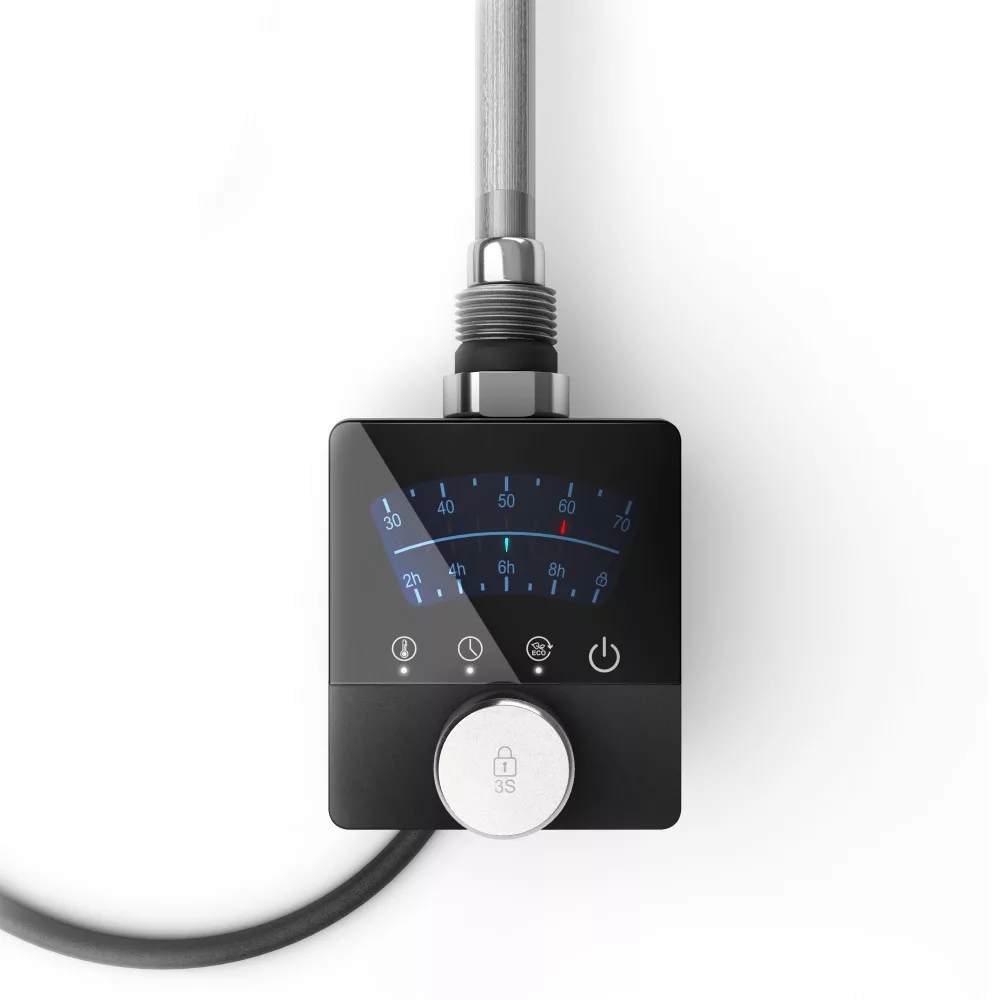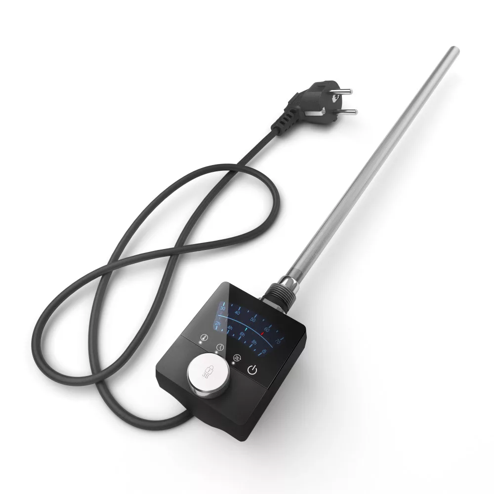Nero Italia AF13 elektromos radiátor fűtőbetét / fűtőpatron törölközőszárító és design radiátorokhoz. Prémium kategóriás fűtőbetét, minőségi anyagokból, megbízható vezérlővel, modern formatervezéssel. A készüléken található nyomógomb segítségével a fűtőbetét működésbe hozható, vagy kikapcsolható.