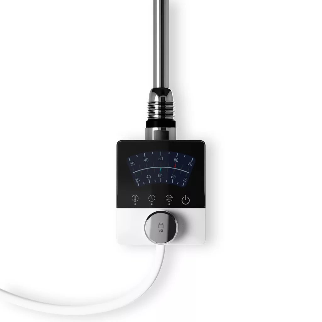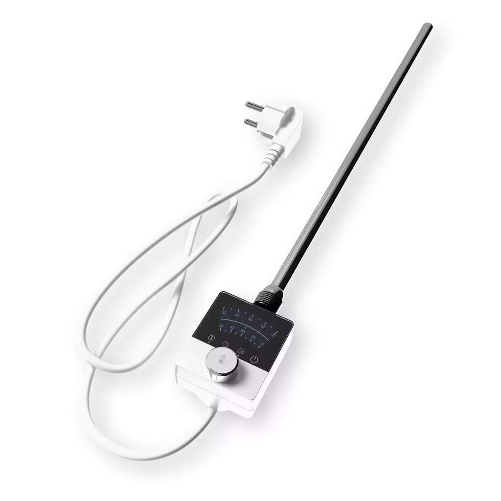 Nero Italia elektromos radiátor fűtőbetét / fűtőpatron törölközőszárítós és design radiátorokhoz. Prémium kategóriás fűtőbetét, minőségi anyagokból, megbízható vezérlővel, modern formatervezéssel. A készüléken található nyomógomb segítségével a fűtőbetét működésbe hozható, vagy kikapcsolható.