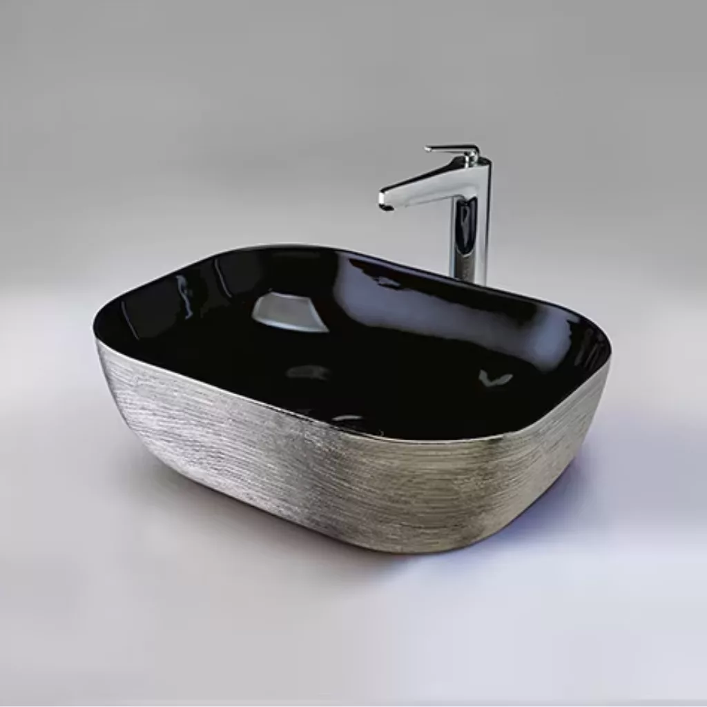 Welland Rio pultra építhető mosdókagyló - 46 x 32 cm (fekete / ezüst)