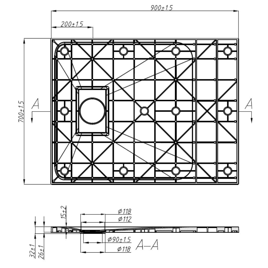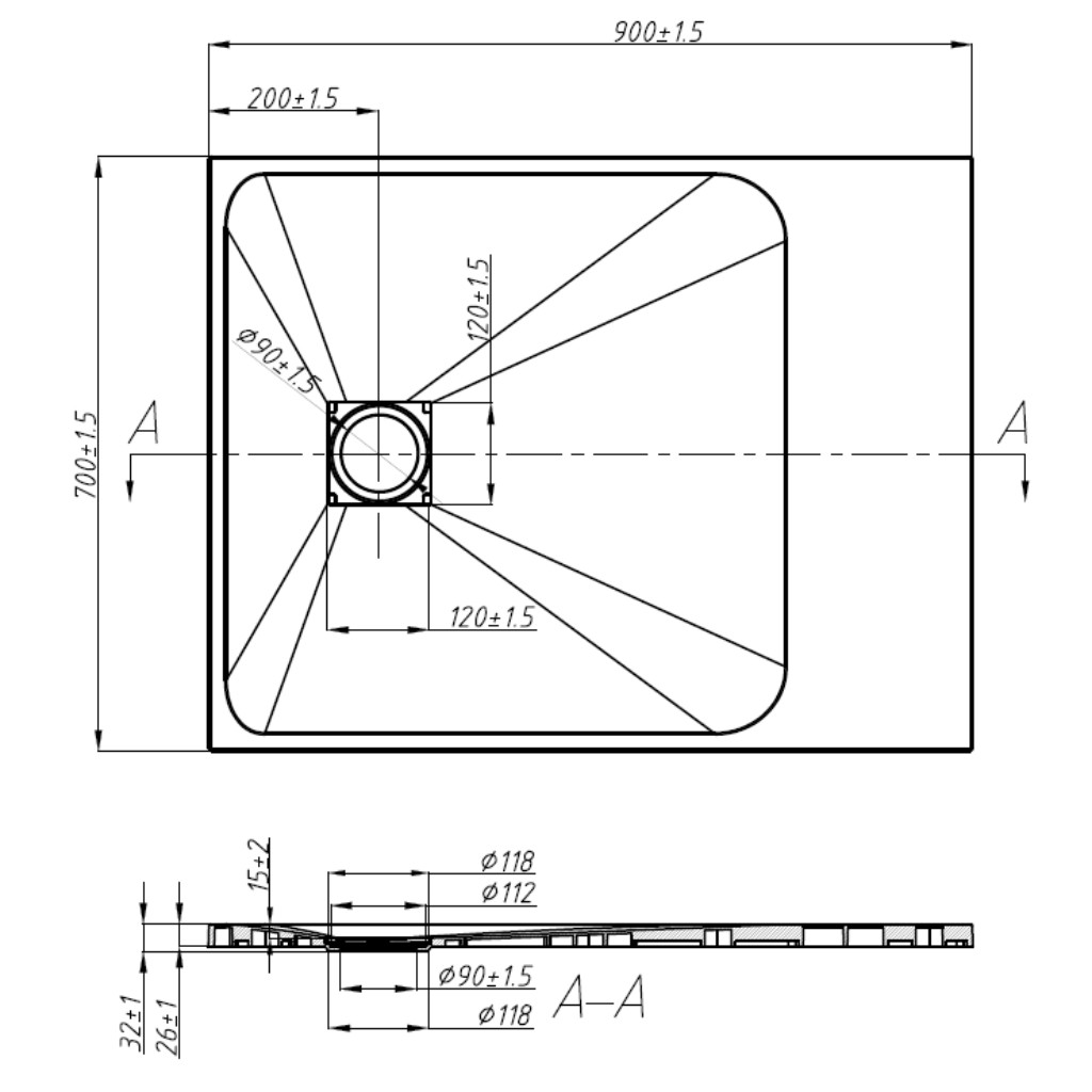 Optimális lejtés: A zuhanytálcát úgy alakították ki, hogy a víz szabadon áramolhasson a lefolyó felé, e kellő lejtési szöggel, ami még nem érzékelhető. Biztosítja a víz gyors és hatékony elvezetését a zuhanytálca felületéről, megelőzve a tócsák kialakulását vagy a víz kifolyását.