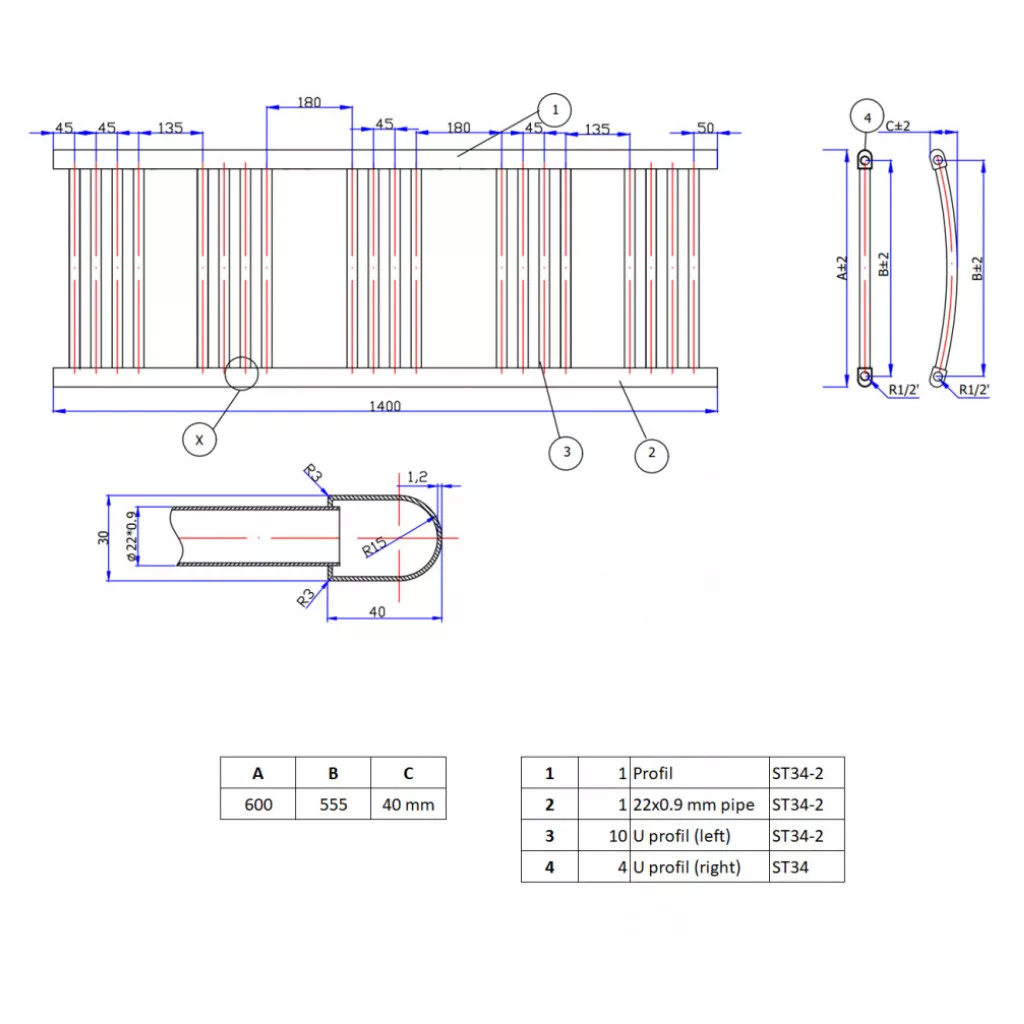 Törölközőszárító radiátor elektromos fűtőpatronnal 30 x 140 cm - Nero Italia AF-13-400W (fehér)