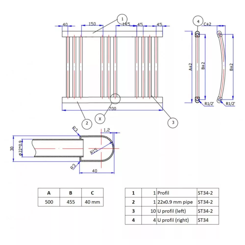 Vízszintes cső keresztmetszet/átmérő: 22 mm
