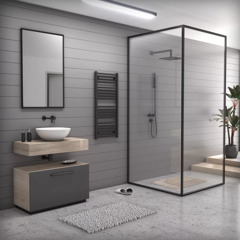 Törölközőszárító radiátor elektromos fűtőpatronnal 50 x 110 cm - Nero Italia AF-05-400W (fekete)