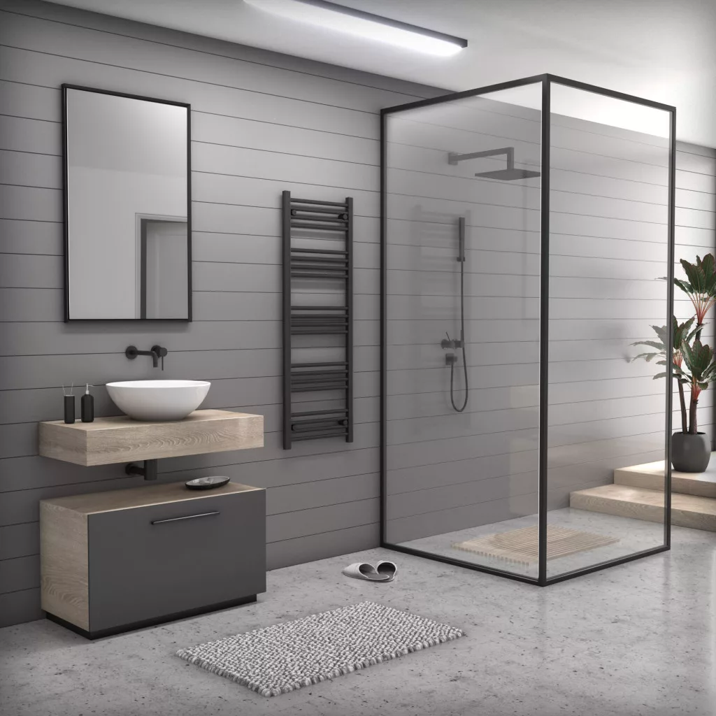 Törölközőszárító radiátor elektromos fűtőpatronnal 50 x 140 cm - Nero Italia AF-05-400W (fekete)