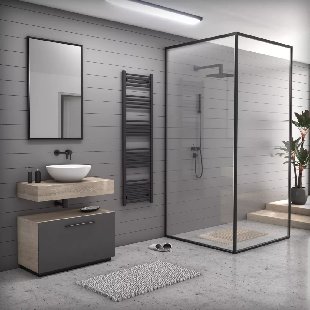 Törölközőszárító radiátor elektromos fűtőpatronnal 50 x 170 cm - Nero Italia AF-05-600W (fekete)