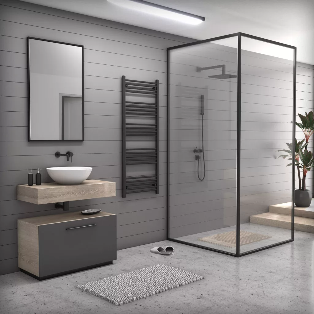 Törölközőszárító radiátor elektromos fűtőpatronnal 60 x 150 cm - Nero Italia AF-05-600W (fekete)