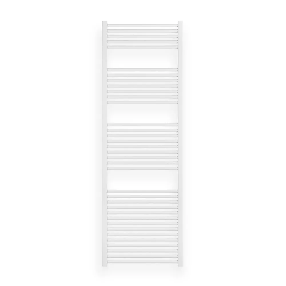 Törölközőszárító radiátor 60 x 180 cm-es méretben, fehér színben. A radiátor tartozéka a rögzítő konzolok és menetes dugók. A Nero Italia fürdőszobai radiátorok kimagasló gyártási minőségben előállított termékek, első osztályú acél felhasználásával készült, precizíós, nagy tartósságú és egyenletes fehér porfestett felülettel.