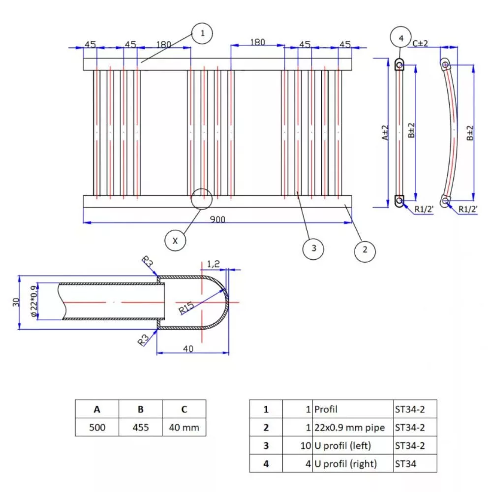Vízszintes cső keresztmetszet/átmérő: 22 mm