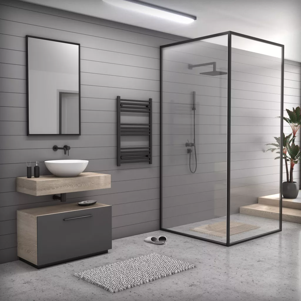Törölközőszárító radiátor elektromos fűtőpatronnal 60 x 90 cm - Nero Italia S-400W (fekete)