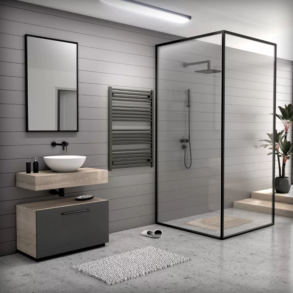 Törölközőszárító radiátor elektromos fűtőpatronnal 75 x 100 cm - Nero Italia AF-05-400W (fekete)