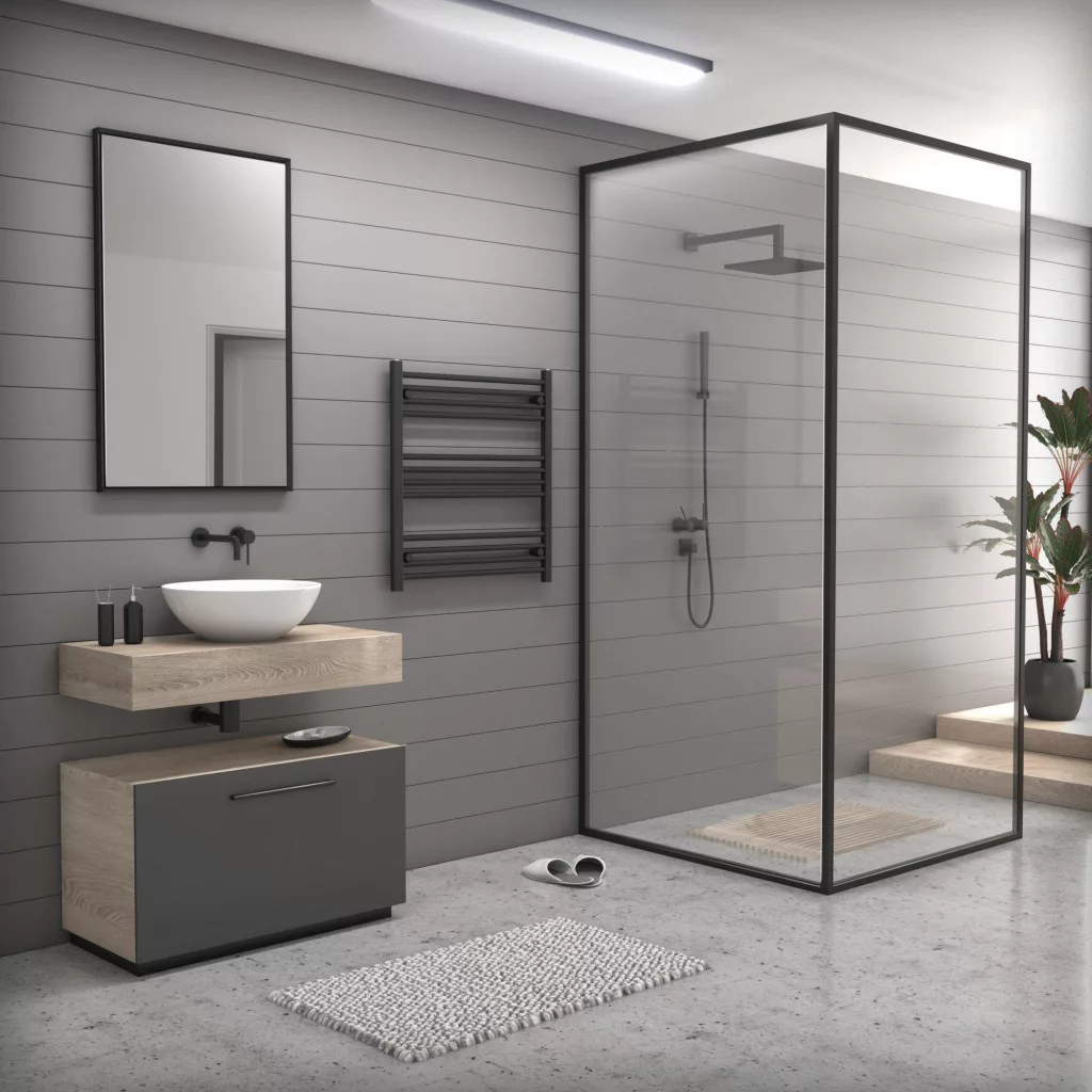 Törölközőszárító radiátor elektromos fűtőpatronnal 75 x 80 cm - Nero Italia AF-05-400W (fekete)