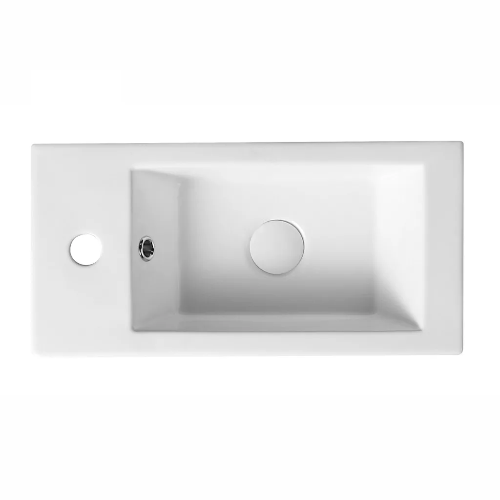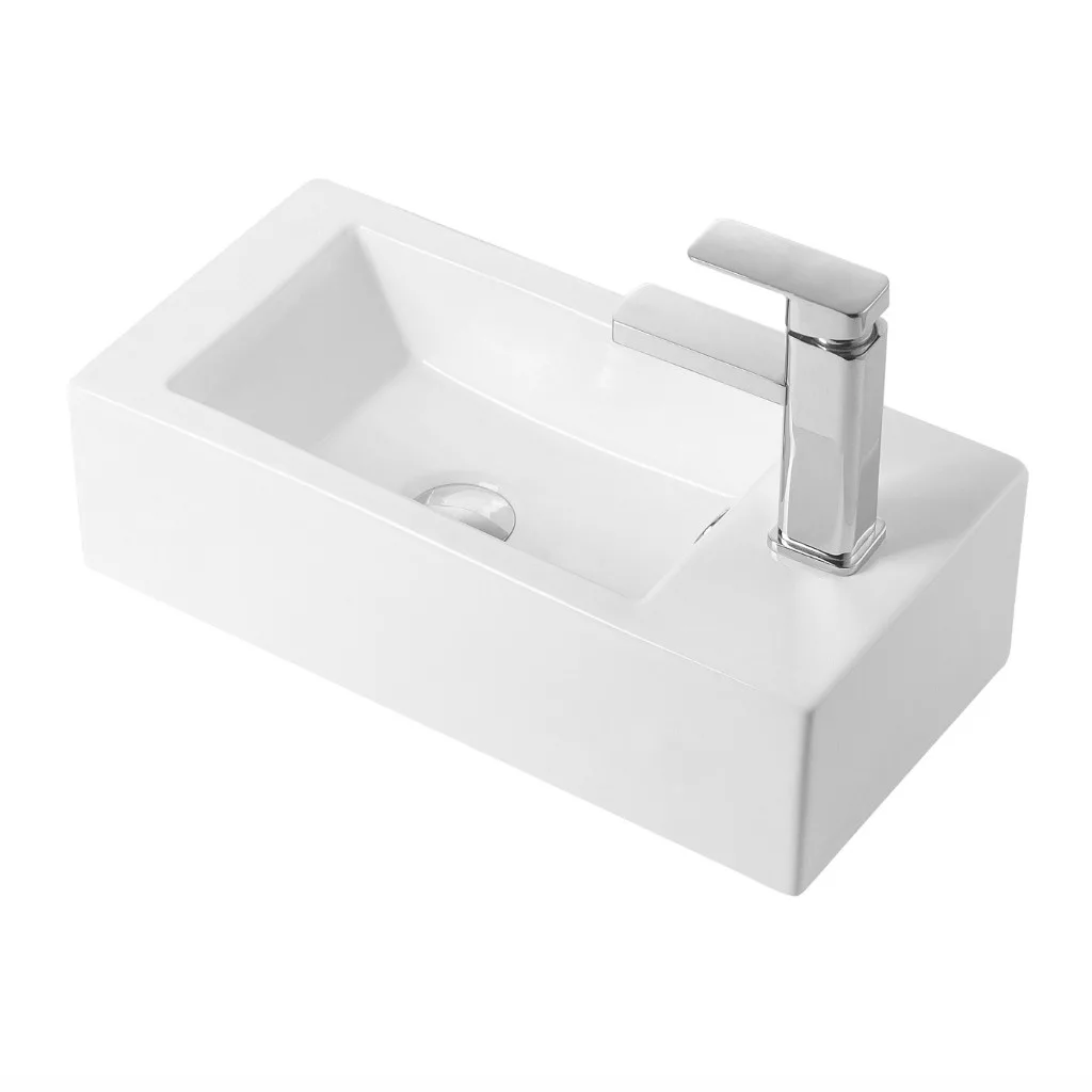 Welland B250 falra szerelhető mosdókagyló. Jobb oldali kialakítás, a medence a telepítés után a jobb oldalon, a csaptelep a bal oldalon helyezkedik el. A mosdó jobb oldalán egy kis tároló perem került kialakításra. A mosdó hátoldalán található lyukak segítségével egyszerűen és stabilan a falra szerelhető. Welland porcelán mosdókagylóink magas minőségben, tartós, többrétegű mázzal égetve, modern nagynyomásom alapuló technológiával méretpontosan öntve készülnek. Hosszú élettartam, és időtálló design jellemzi. Kerámia mosdókagylóink gyártási folyamatáról további részleteket blog bejegyzésünkben olvashat.