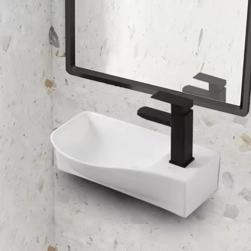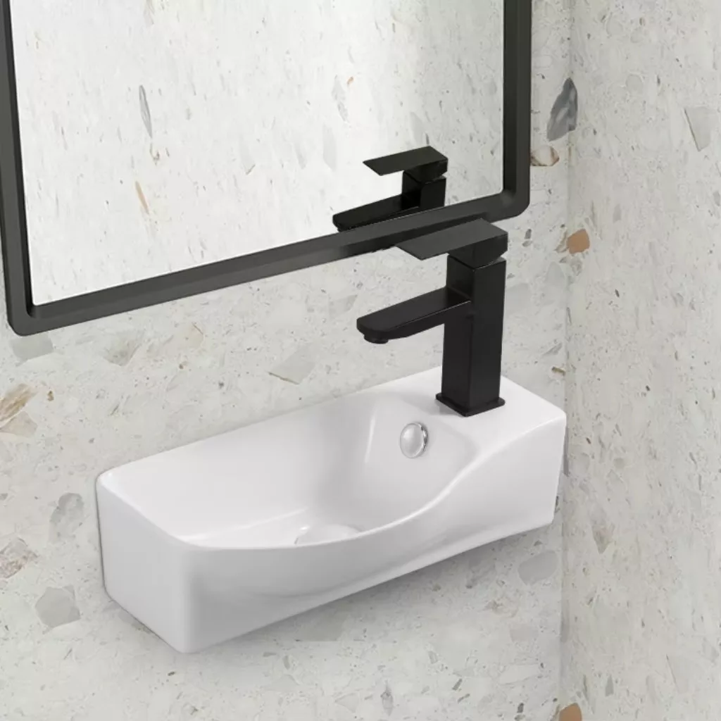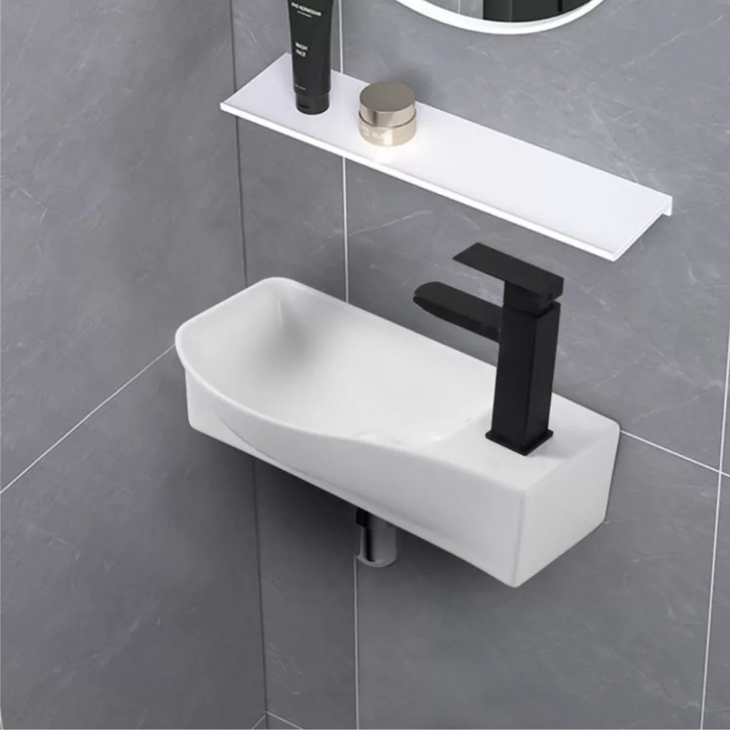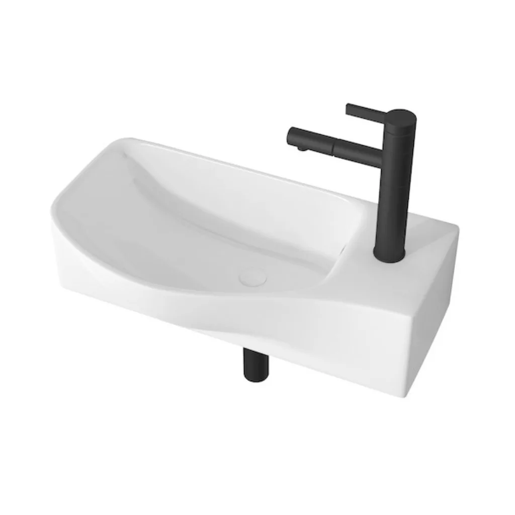 Welland Y9528R falra szerelhető mosdókagyló. Bal oldali kialakítás, a medence a telepítés után a bal oldalon, a csaptelep a jobb oldalon helyezkedik el. Helytakarékos, de ugyanakkor tágas mosdókagyló, ami tökéletes megoldás olyan fürdőszoba vagy WC  helyiségekben, ahol csak kevés szabad hely áll rendelkezésre a mosdókagyló számára. A mosdón kialakított lyukak segítségével, egyszerűen és stabilan a falra szerelhető. Welland porcelán mosdókagylóink magas minőségben, tartós, többrétegű mázzal égetve, modern nagynyomásom alapuló technológiával méretpontosan öntve készülnek. Hosszú élettartam, és időtálló design jellemzi. Kerámia mosdókagylóink gyártási folyamatáról további részleteket blog bejegyzésünkben olvashat. A csomag a csaptelepet nem tartalmazza.