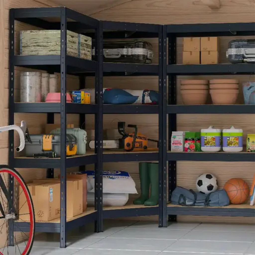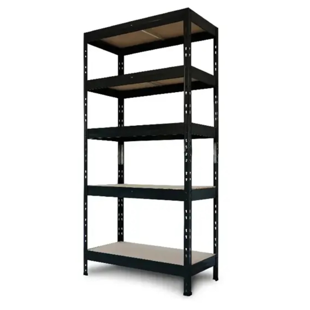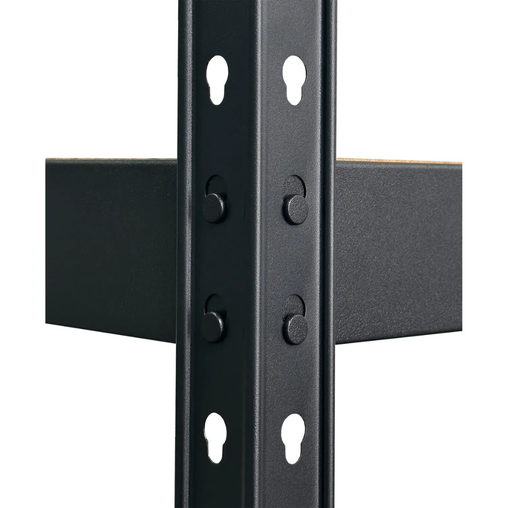 180 x 90 x 40 cm méretű acélvázból álló tároló polc, 5 polccal. Nagy tatósságú fekete porfestéssel készült, csavarozás nélkül, "keyhole" technológiával kialakított, egymásba illeszthető elemekből összeállítható, ahol a polcokat tetszőleges magasságban helyezhetjük el. Ideális tároló polc garázsokban, műhelyekben, kamrákban. Az állvány teherbírása polconként 175 kg egyenletes súlyelosztás esetén. Egyszerű és gyors összeszerelés szerszámok és csavarok nélkül, az egymásba illeszthető rendszernek köszönhetően.