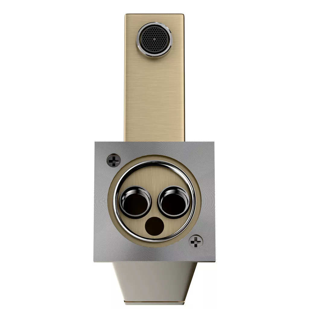 Welland Vista magasított kialakítású mosdó csaptelep, letisztult formatervezésének köszönhetően egy minimalista és bármely modern stílusú fürdőszoba tökéletes része. Speciális égetéssel felvitt nagy tartósságú szálcsiszolt matt arany színű felület, kerámia keverőszelep, precíz vízfolyás erősség és hőmérséklet állítás. A csomag tartalmazza a flexibilis beköző csöveket és rögzítőket.