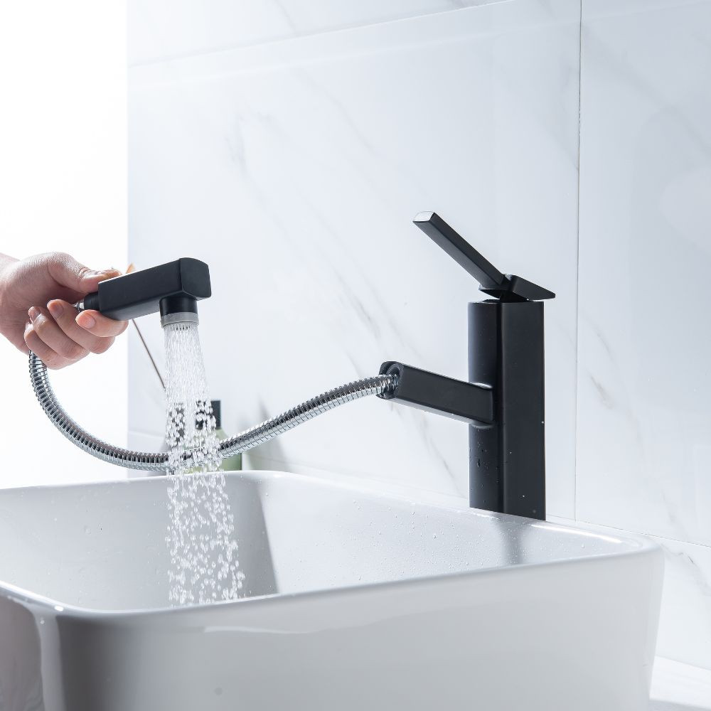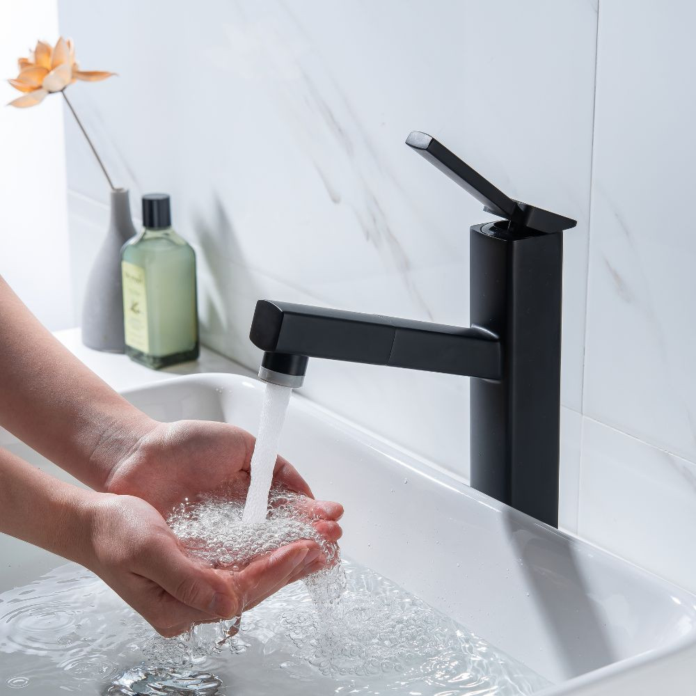 Welland FH-3400 magasított mosdó csaptelep - kihúzható multifunkciós fej (fekete)