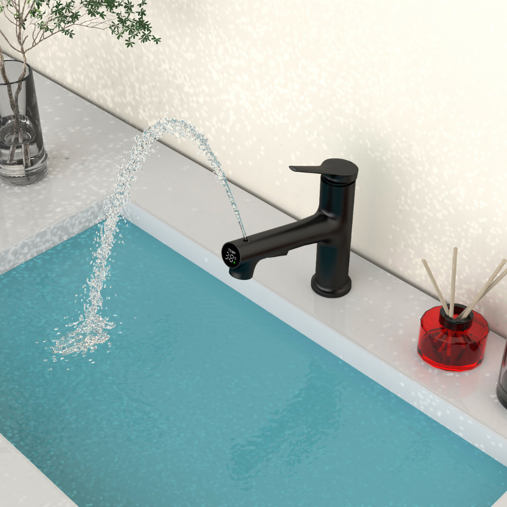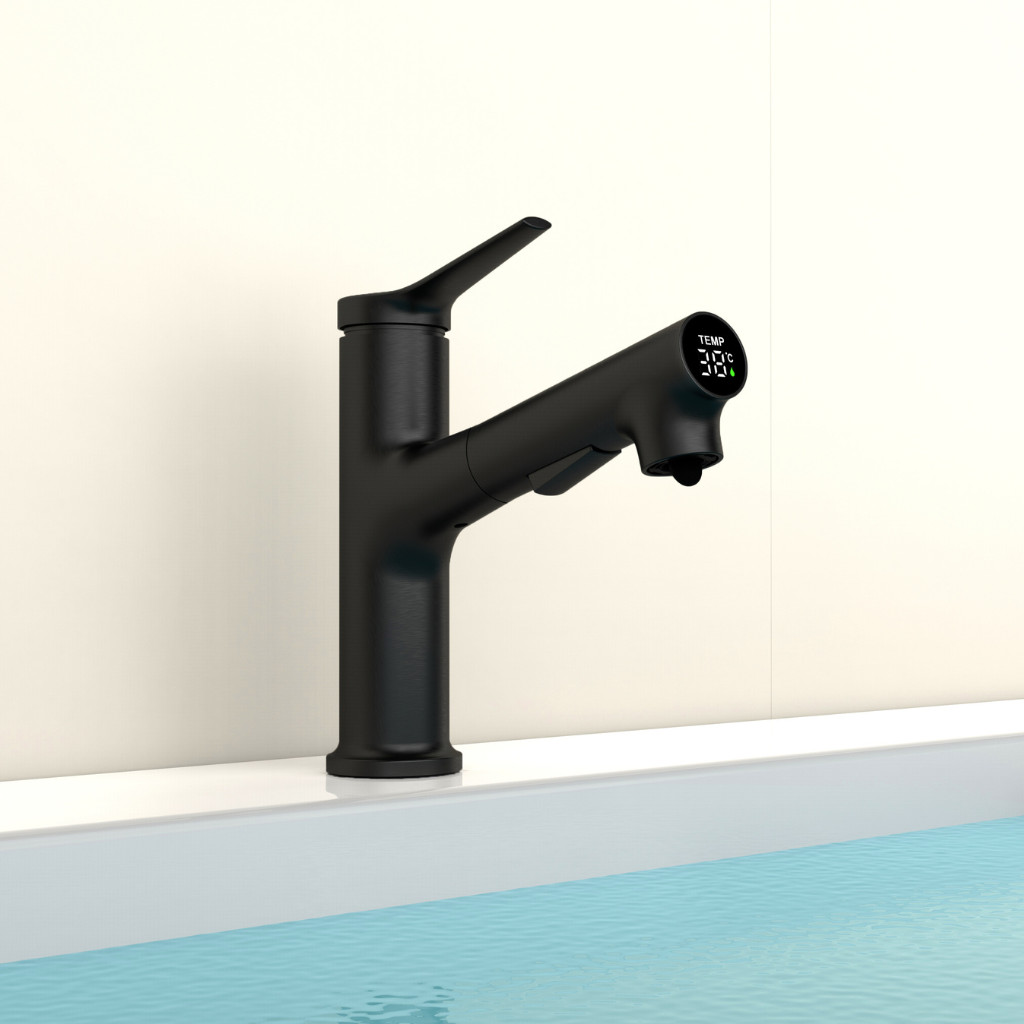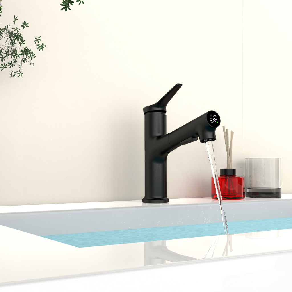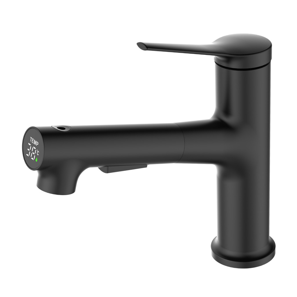 Welland FH-4237 kihúzható fejes mosdó csaptelep - vízhőfok kijelző (fekete)