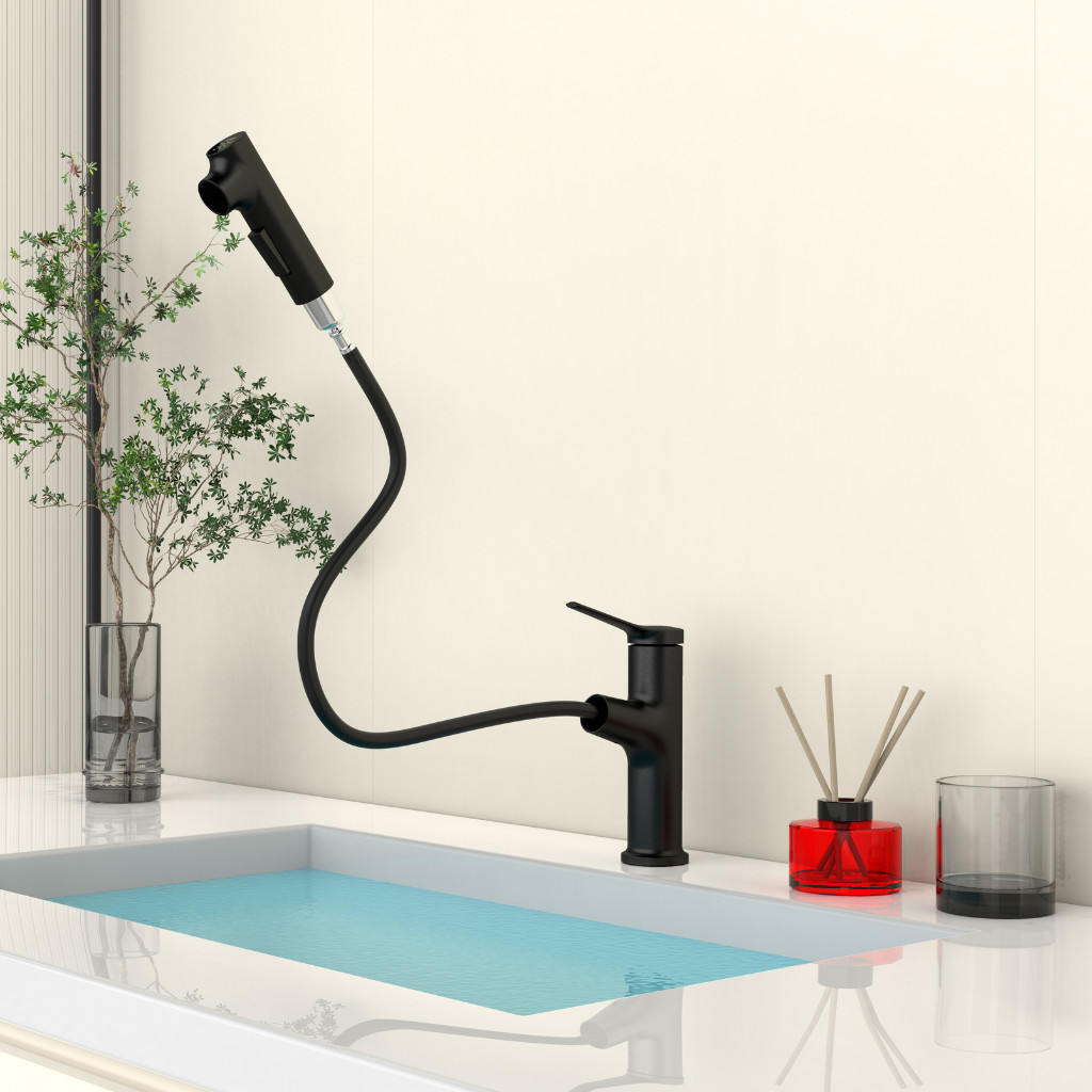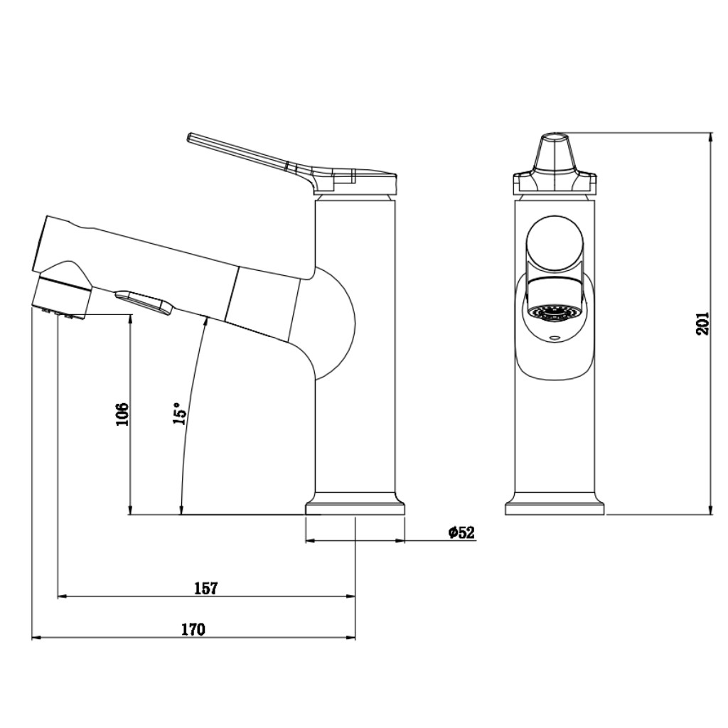 Kíhúzható zuhanyfej: a víz egy kihúzható csövön keresztül áramlik, így a csaptelep fej 50 cm hosszúságig kihúzható.