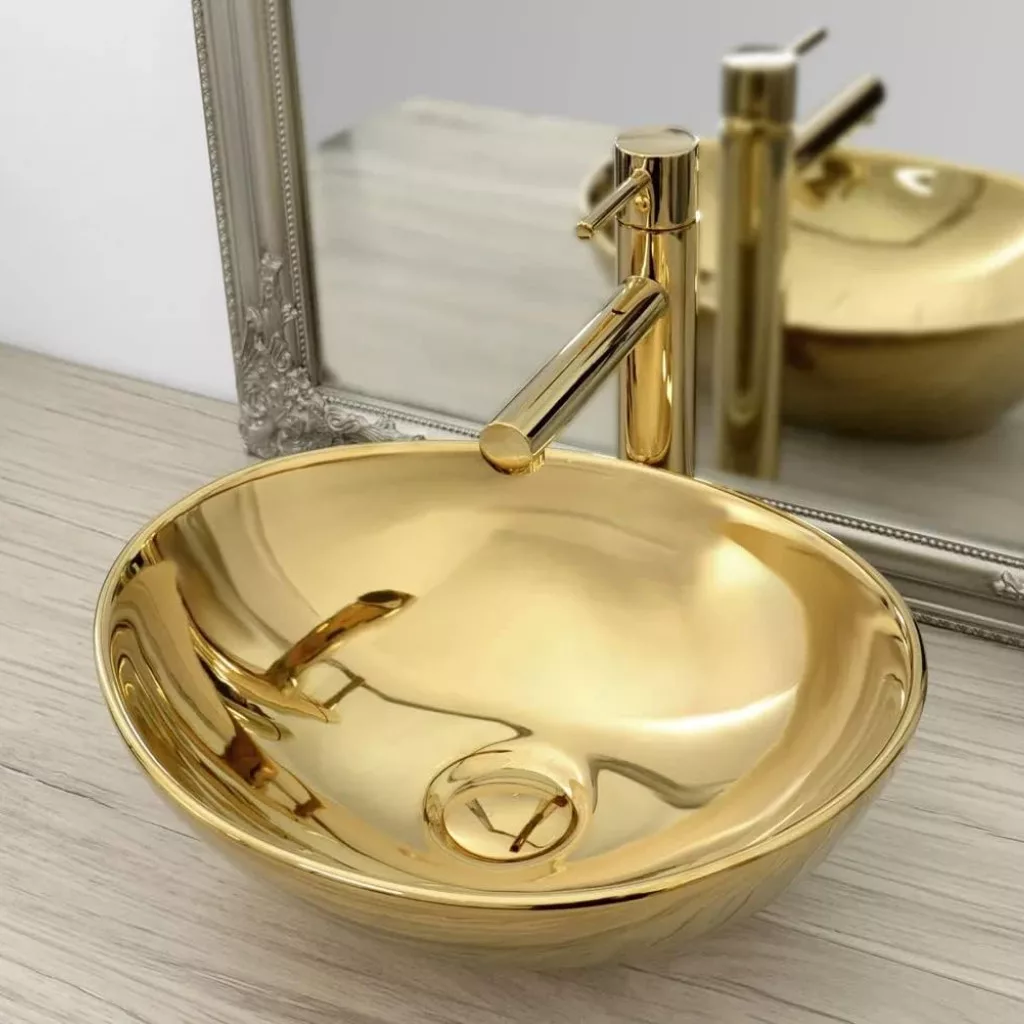 Welland Y9020A munkalapra telepíthető mosdó, elegáns enyhén íves formatervezés, arany szín. Ovális kialakítás, mérete 40.5 x 33 cm, ami kellően nagy méretével kényelmes használatot tesz lehetővé. Welland porcelán mosdókagylóink magas minőségben, tartós, többrétegű mázzal égetve, modern nagynyomásom alapuló technológiával méretpontosan öntve készülnek. Hosszú élettartam, és időtálló design jellemzi. Kerámia mosdókagylóink gyártási folyamatáról további részleteket blog bejegyzésünkben olvashat.