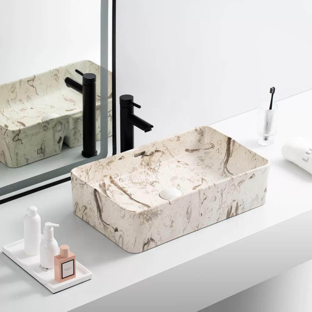 Welland pultra építhető kerámia mosdó - márvány mintás