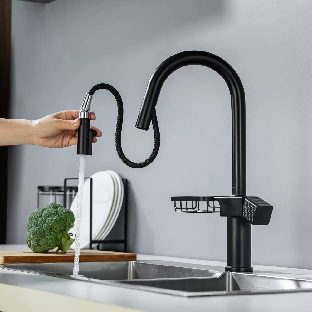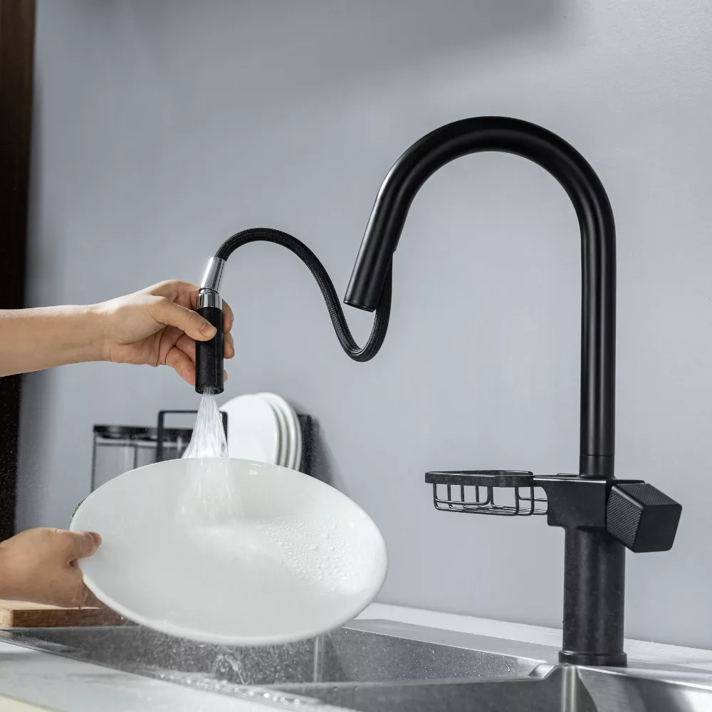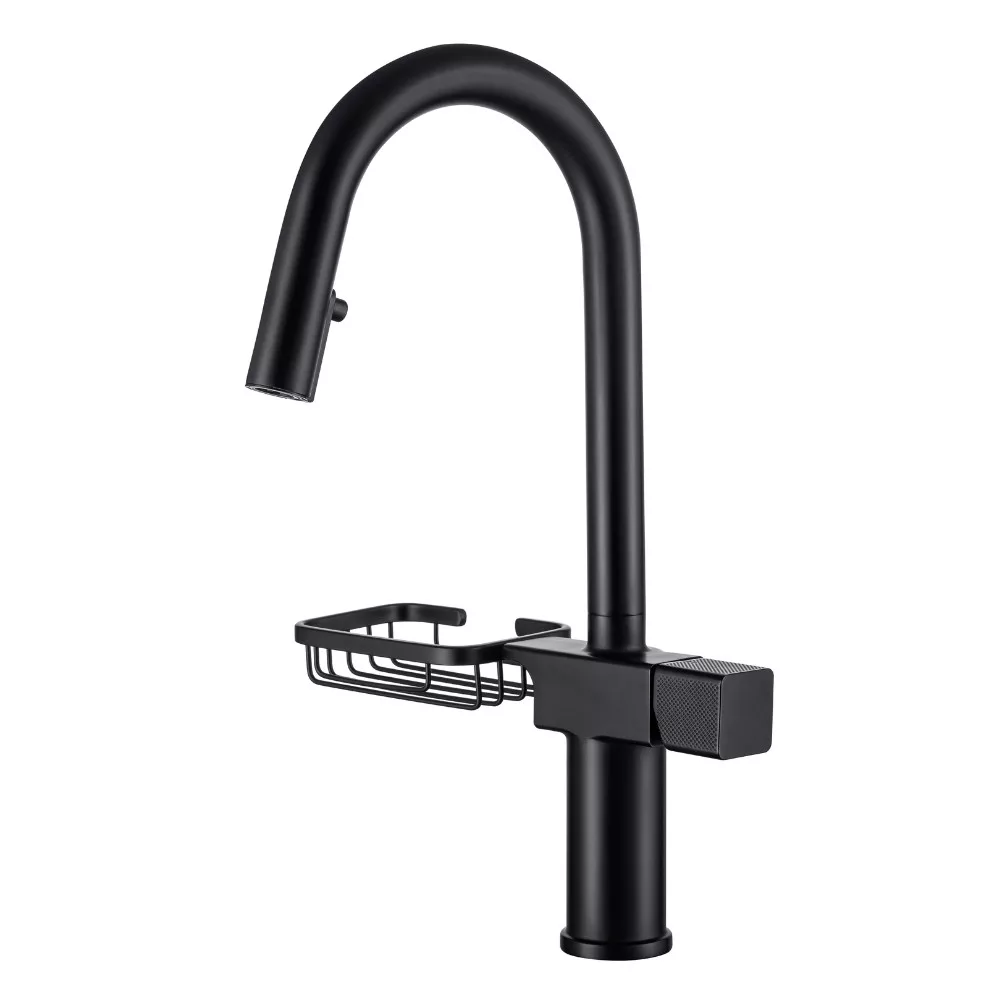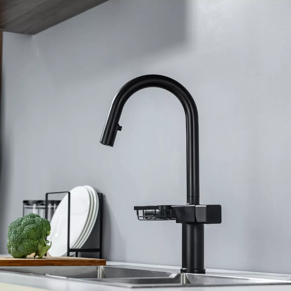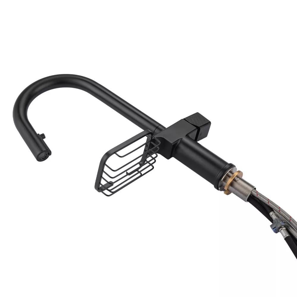 Welland FH-3405-5 mosogató csaptelep - kihúzható multifunkciós fej - tároló rekesz (fekete)