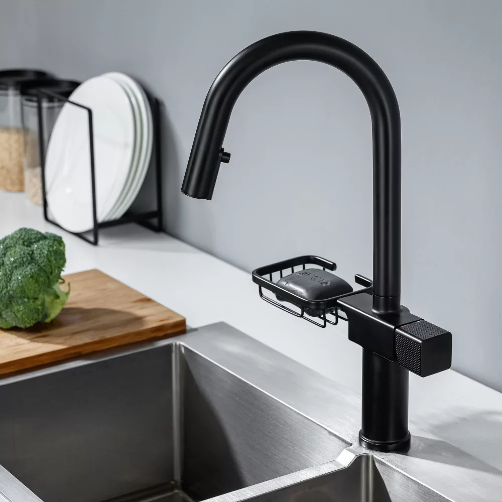 Beépített tároló rekesz: a csaptelep bal oldalán található univerzális tároló ideális a tisztítószerek vagy kisebb, mosogatáshoz szükséges segédeszközök esztétikus tárolására.