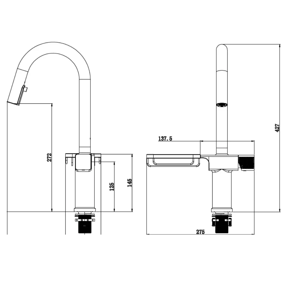 Welland FH-3405E-5 mosogató csaptelep, ami egy modern multifunkciós csapteleppel szembeni minden követelményt teljesít. A modern design és a konyhában szükséges funkciók tárháza egyesül az Austler mosogató csaptelepek minden modelljénél. A magasított kialakítás, a beépített univerzális tároló rekesz és a 2 funkciós zuhanyfej egy innovatív, praktikus megoldást kínál a konyhába. Magas minőségű sárgaréz és kompozit anyagok felhasználásával, hosszú élettartamot biztosító többszörös rétegben, elektrosztatikus technológiával festett csaptelep, precíz kerámia keverőszeleppel és víztakarékos perlátorral.